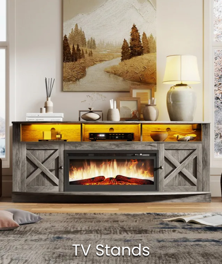 70" Farmhouse TV Stand with Electric Fireplace and LED Light
