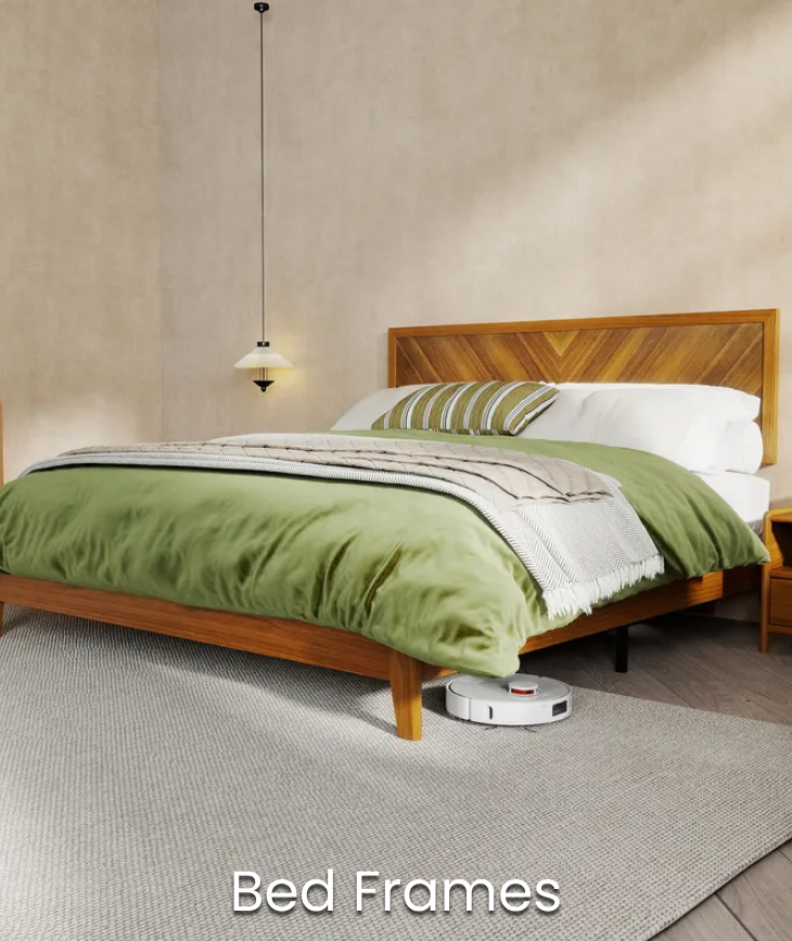 Mid-Century Queen Size Solid Wood Bed Frame with Adjustable Headboard
