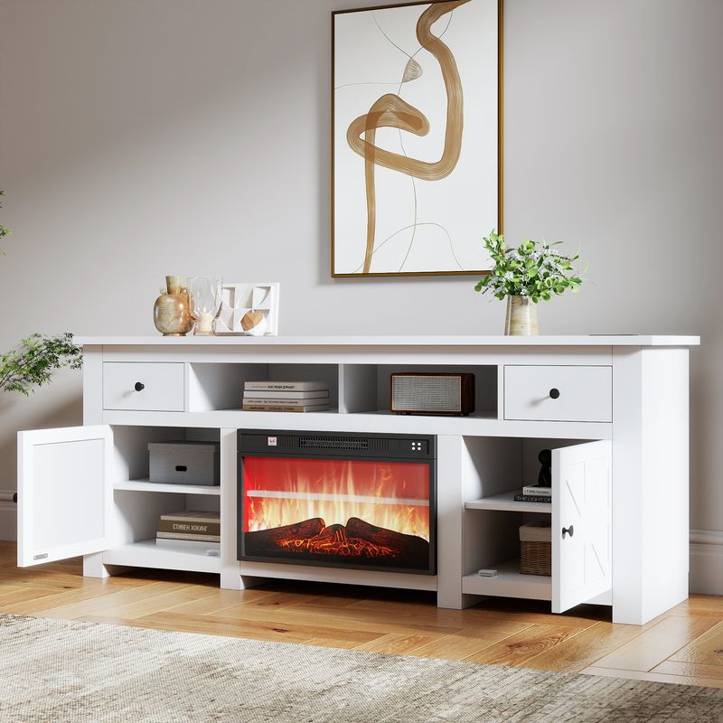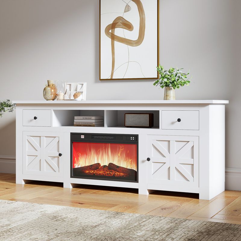 Farmhouse 70" Electric Fireplace TV Stand with Storage Drawers