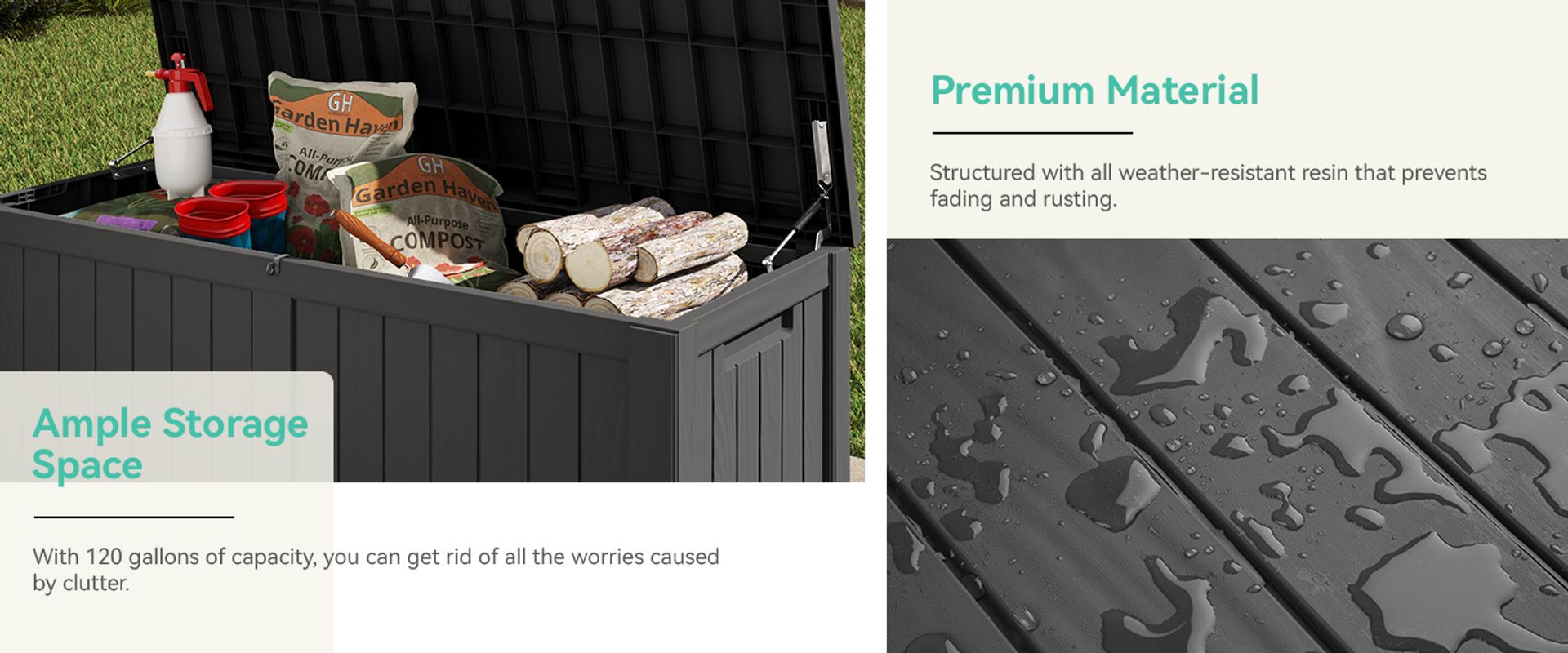 120 Gallon Large Waterproof Resin Deck Box with Lockable Lid