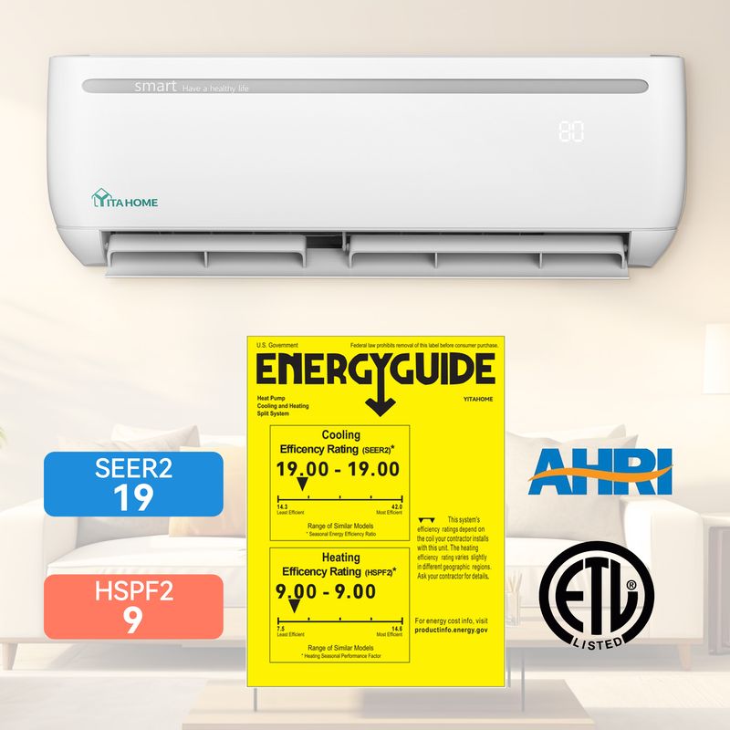 Equipped with a high-power compressor and heat pump; Applyed innovative inverter technology with 25% energy savings; Covers 1,250 square feet, ideal for various indoor scenes; ETL and AHRI certified.
