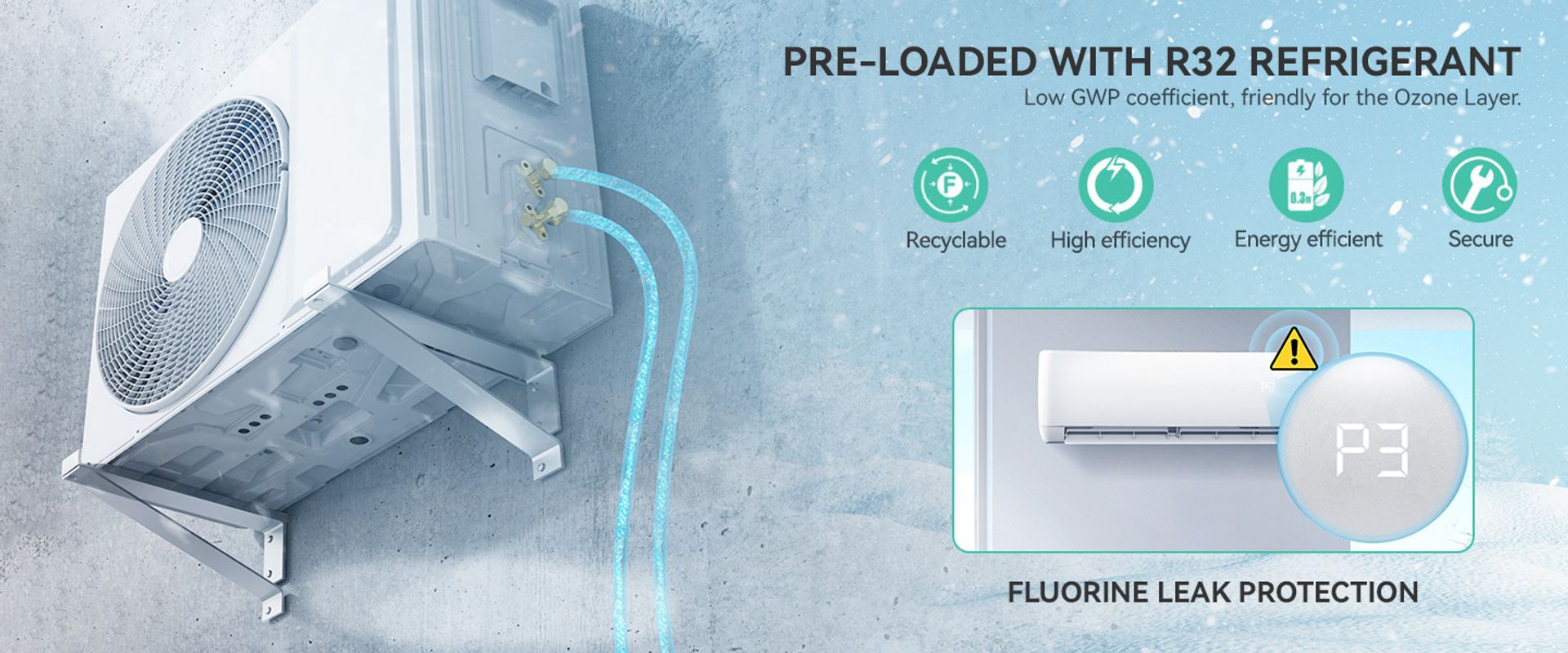 Our ac mini split system comes with comprehensive installation kit; Pre-charged with environmental friendly R32 refrigerant (replaceable with R410A refrigerant); Professional installation is required.