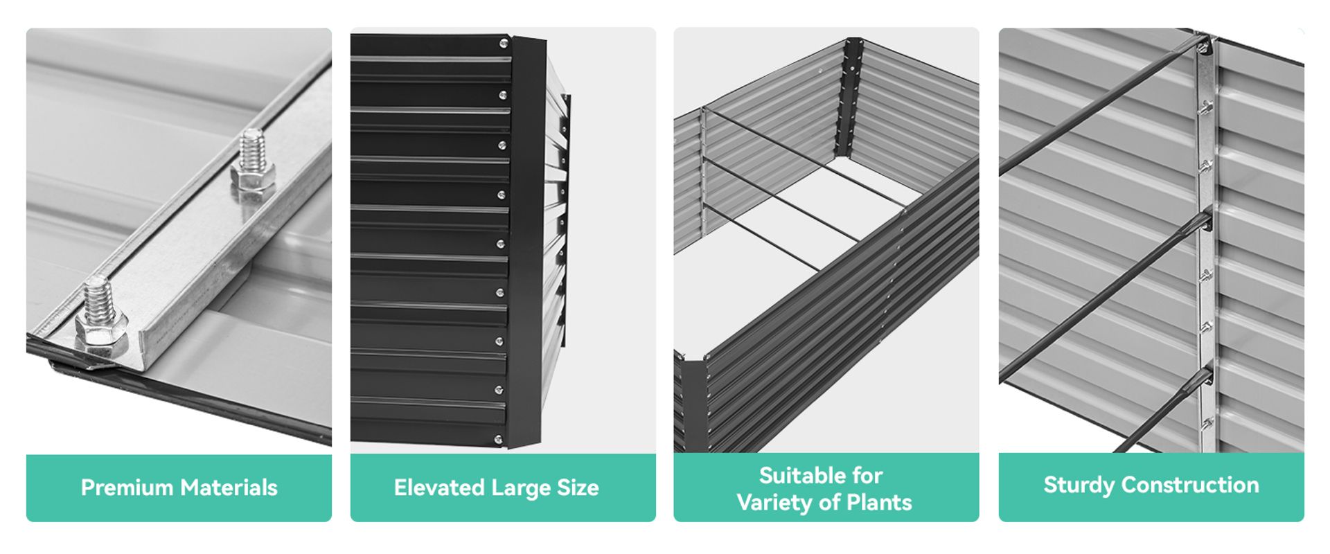 Our metal garden bed features a premium galvanized coating that boasts exceptional weather resistance, with a lifespan that’s 3-7 times longer than other products; The sturdy joints can withstand high pressure without loosening or deforming
