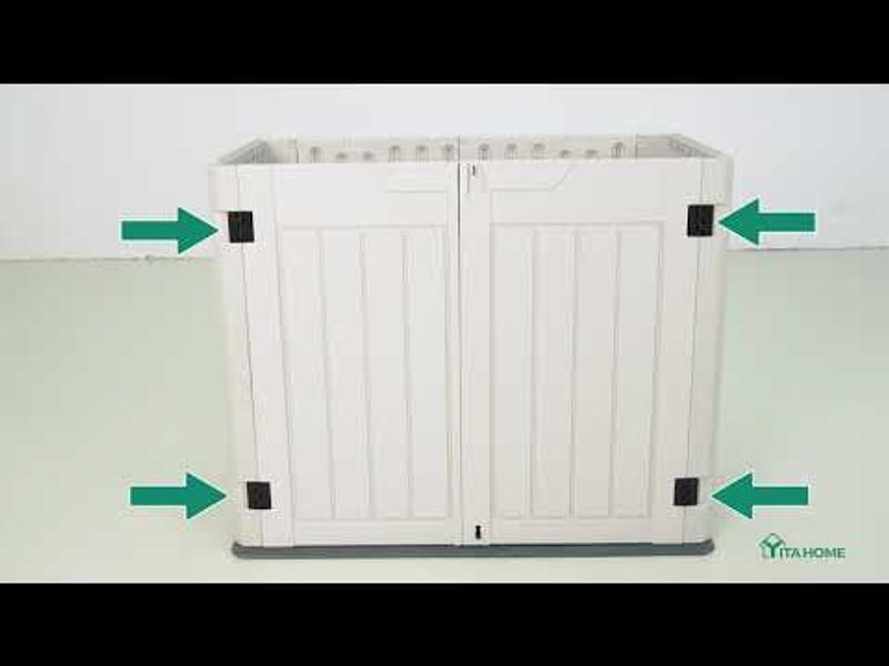 The YITAHOME horizontal storage shed offers 35 cu. ft. of organized space—no shelves needed. Made of weatherproof resin, it withstands sun, rain, and frost, with multiple doors for easy access to bikes, bins, and tools. Its waterproof, lockable design keeps items dry and secure, blending function with sleek style.