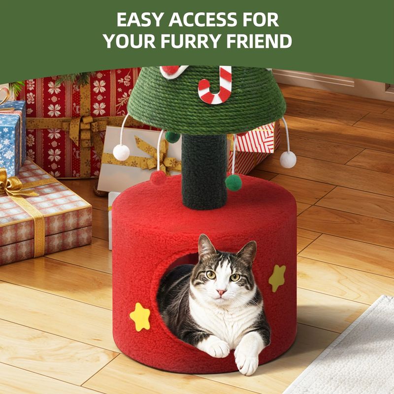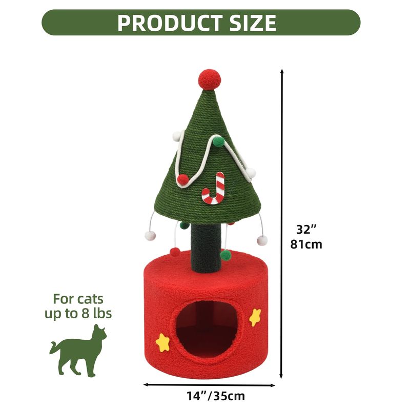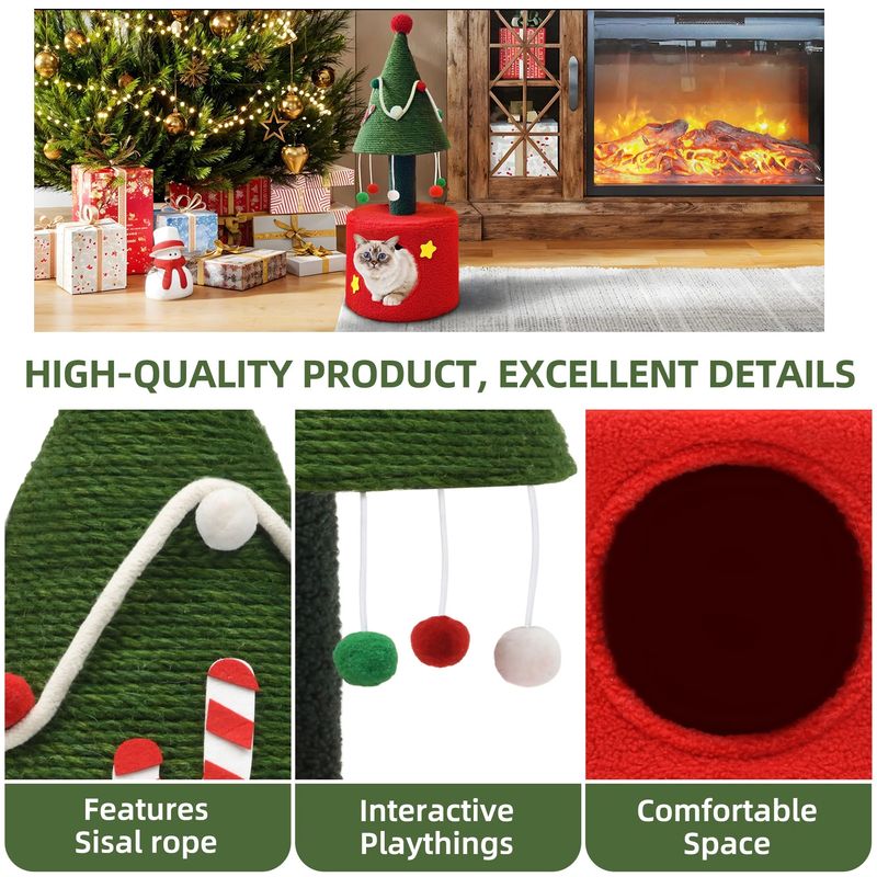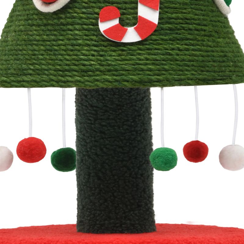 Featuring colorful plush hanging balls, this Christmas cat tree keeps your cat active and engaged during the holiday season, offering both exercise and joy in a festive setting.