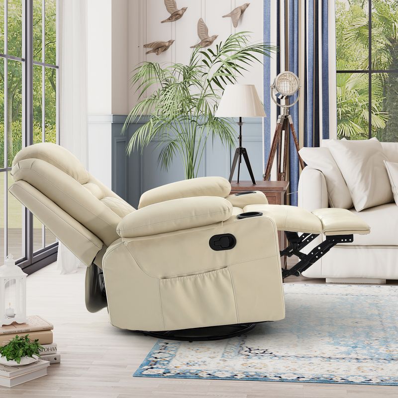 360° smooth swivel base with 30° rocking motion and manual 90-150° reclining lets you easily adjust positions for reading, TV, or napping.