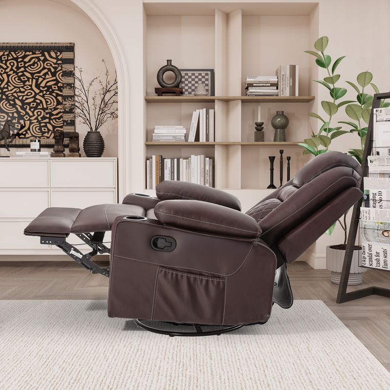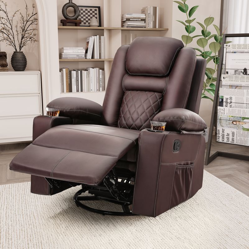This premium power recliner combines 360° swivel, 30° rocking, and 90-150° manual recline with 8-point massage & lumbar heating. Featuring faux leather upholstery, dual cup holders, and side pockets, it delivers ultimate comfort for living rooms or home theaters.