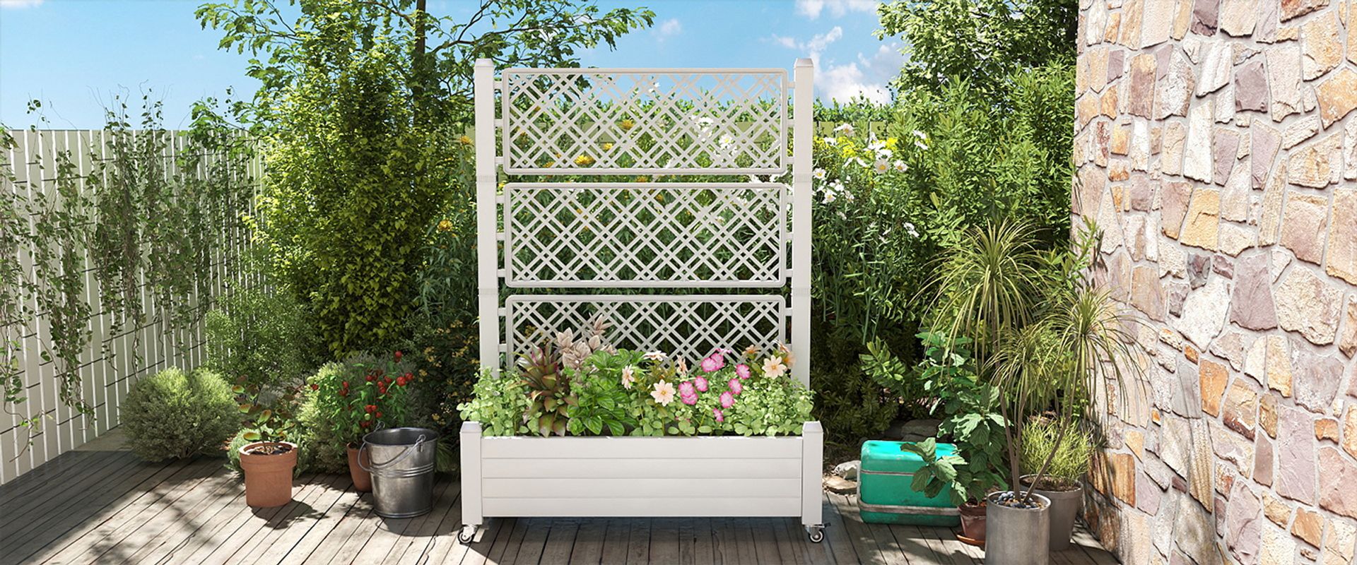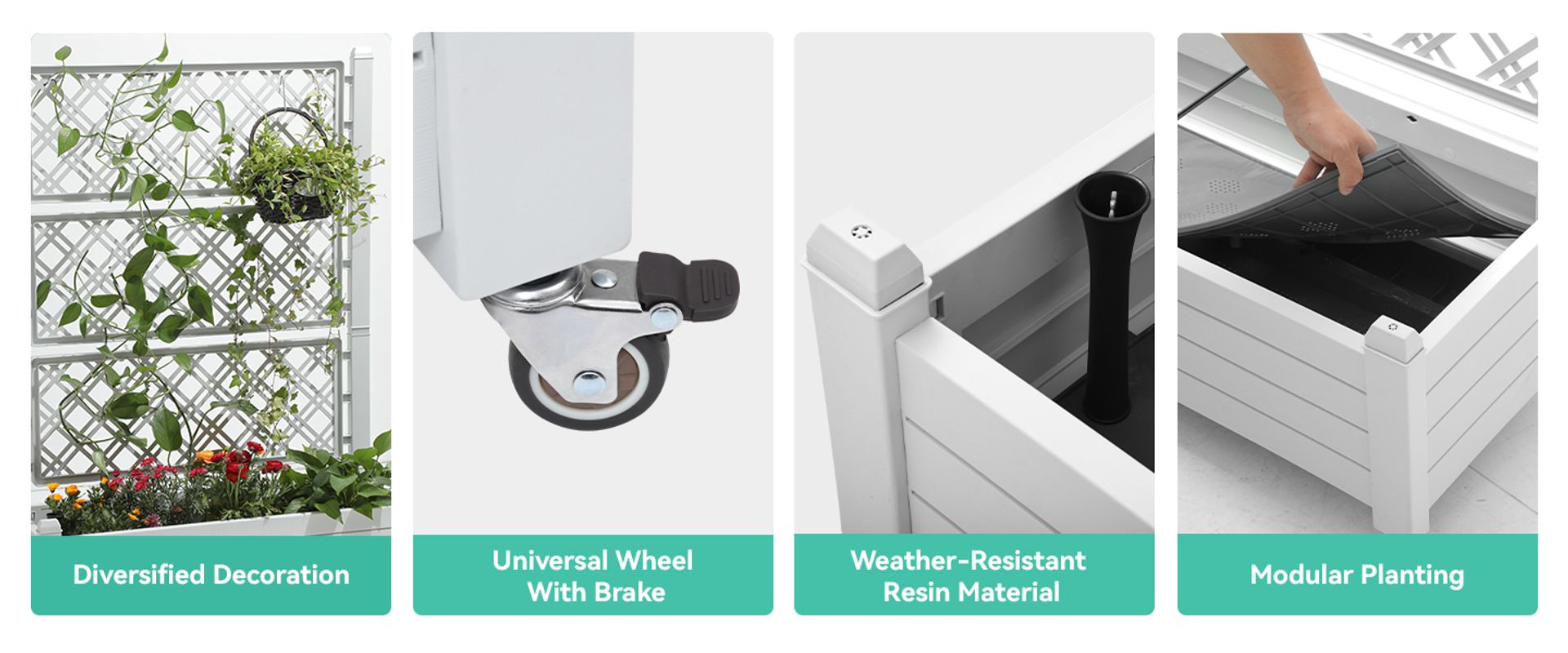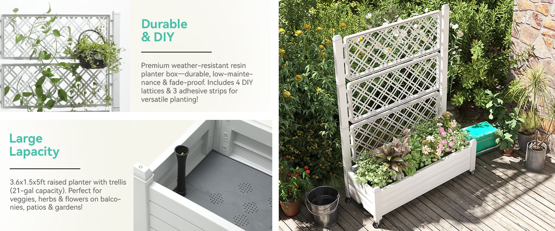 Premium weather-resistant resin planter box—durable, low-maintenance & fade-proof. Includes 4 DIY lattices & 3 adhesive strips for versatile planting!