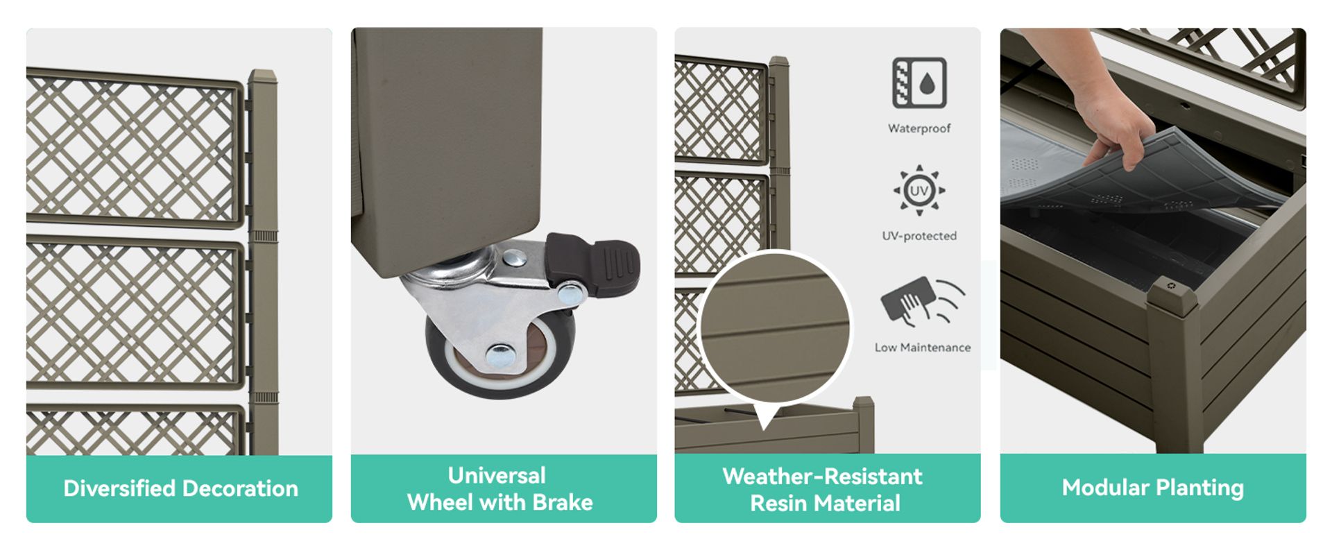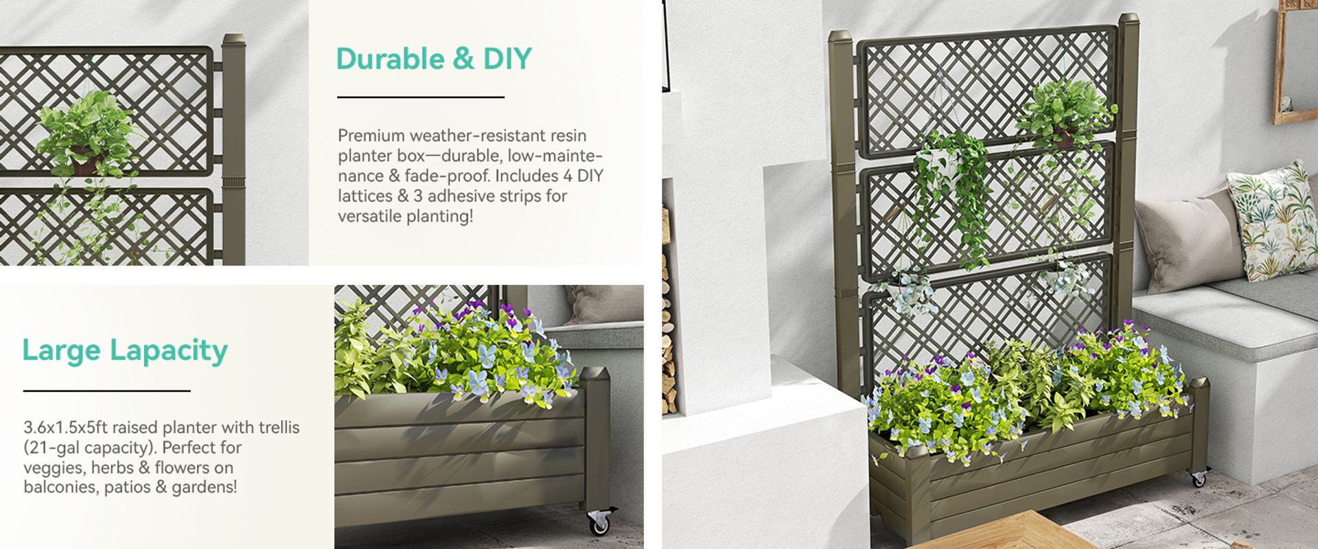 Premium weather-resistant resin planter box—durable, low-maintenance & fade-proof. Includes 4 DIY lattices & 3 adhesive strips for versatile planting!