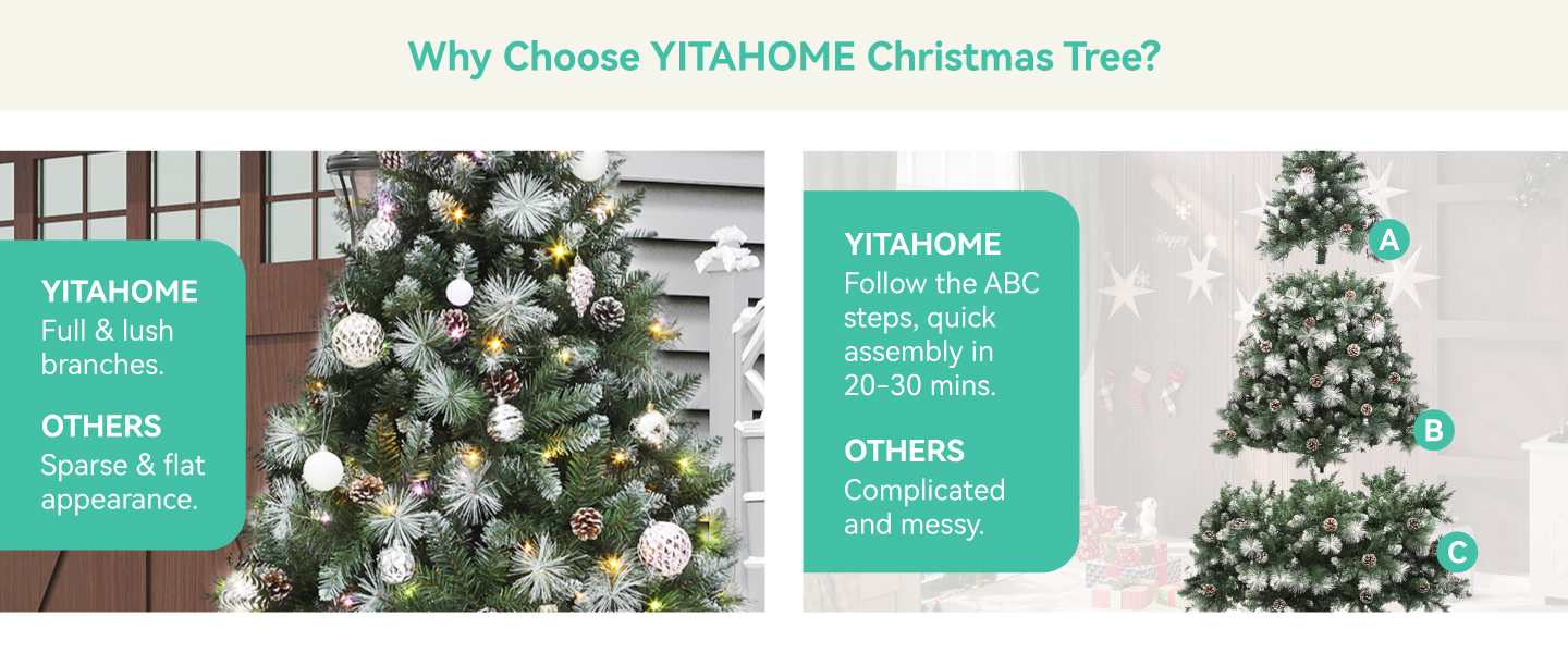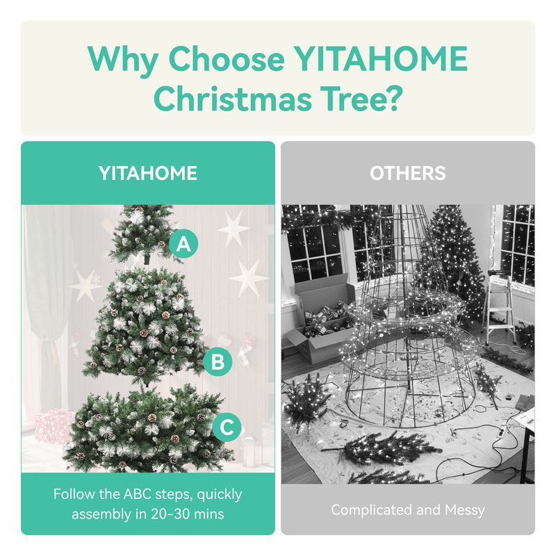 Bring holiday magic home with the YITAHOME Pre-Decorated Scotch Pine Christmas Tree. Standing 4.5 ft tall, it features pinecones, lush PVC tips, and remote-controlled lights with 3 colors and 11 modes. Easy to assemble, sturdy, and realistic, this tree is built to impress season after season.