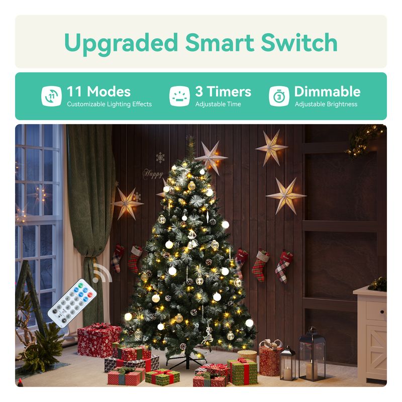With 150 pre-strung lights, 3 colors and 11 lighting modes, you can easily adjust the brightness and color within a range of 13 feet to create a cozy or festive atmosphere.