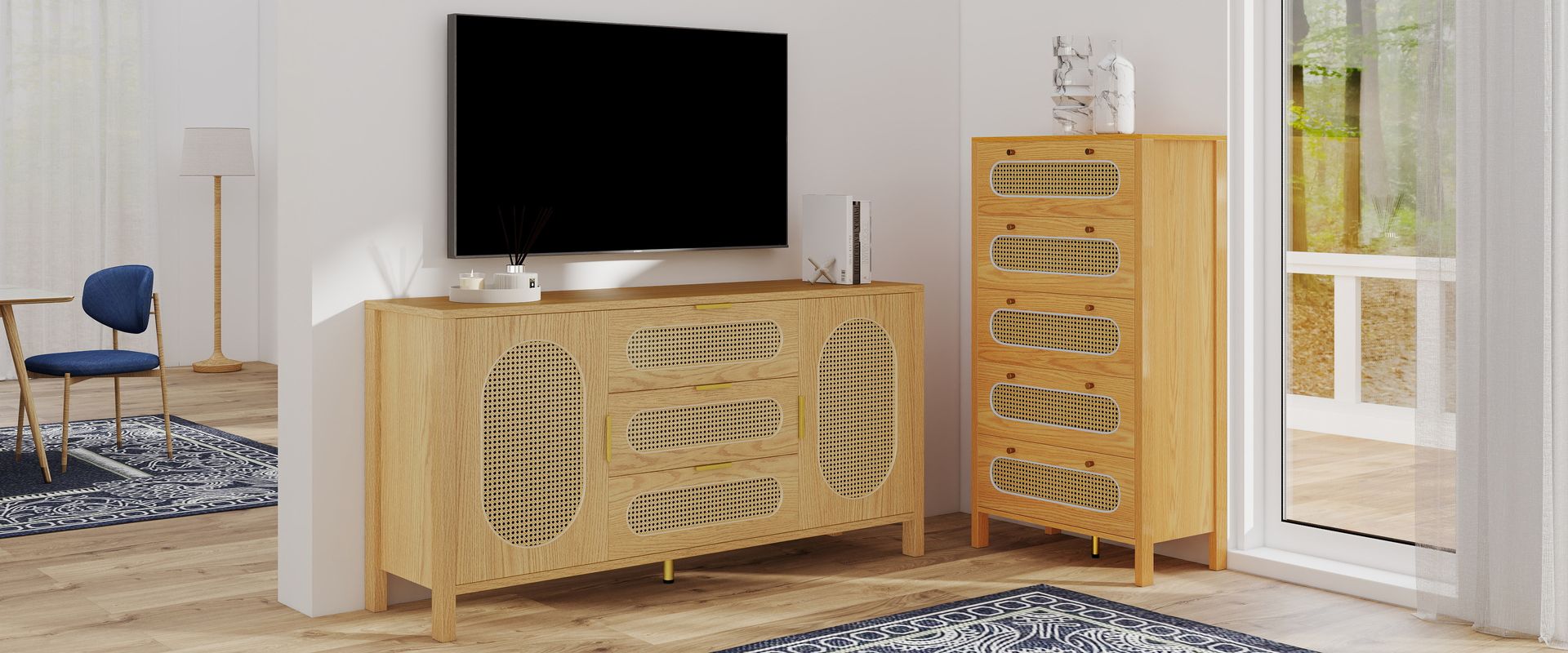 47" Tall Rattan Design 5 Drawer Storage ​Cabinet for Living Room