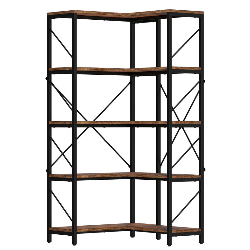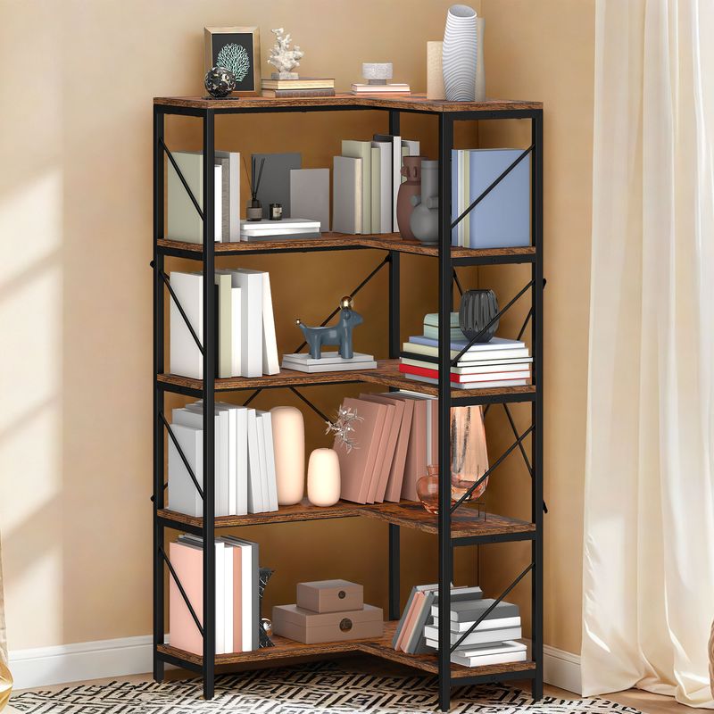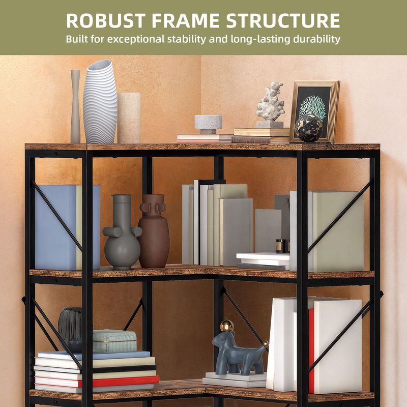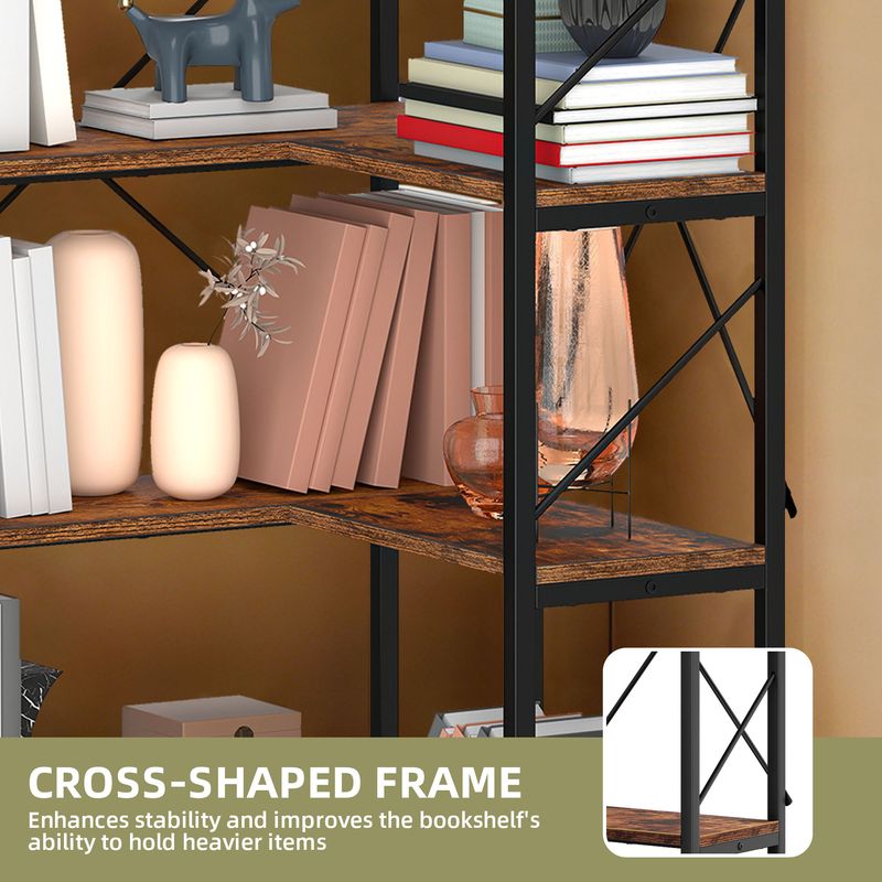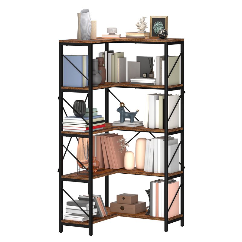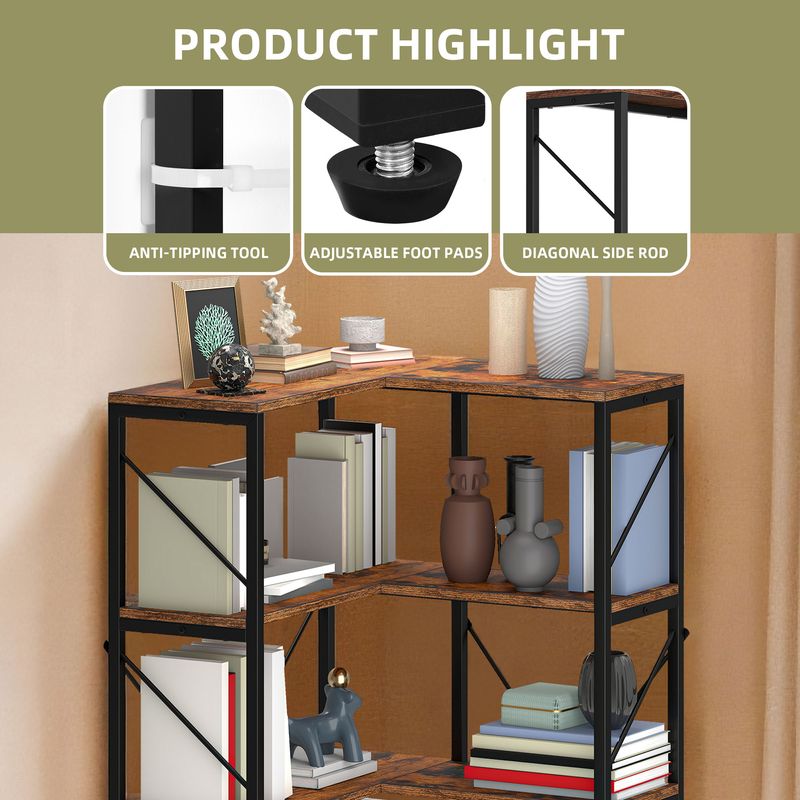 You can maximize corner space with this L-shaped bookshelf, which features a stable metal frame + 15mm P2 particleboard. The bookshelf offers 10 adjustable shelves, X-brace stability, and anti-tip design, fitting home and office.