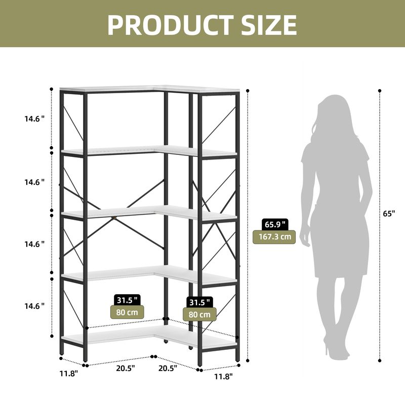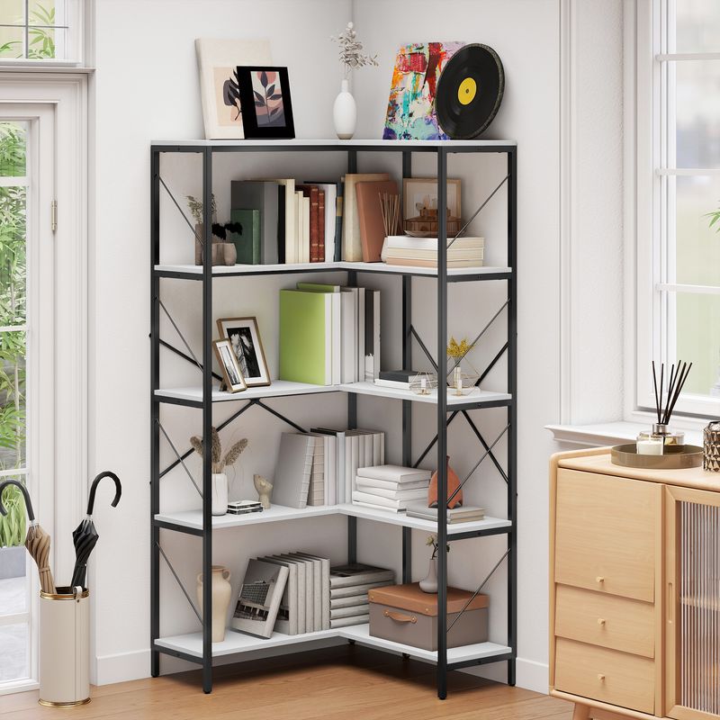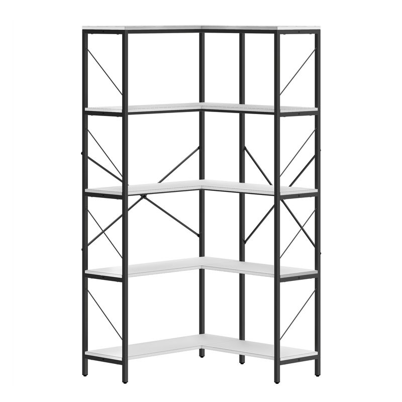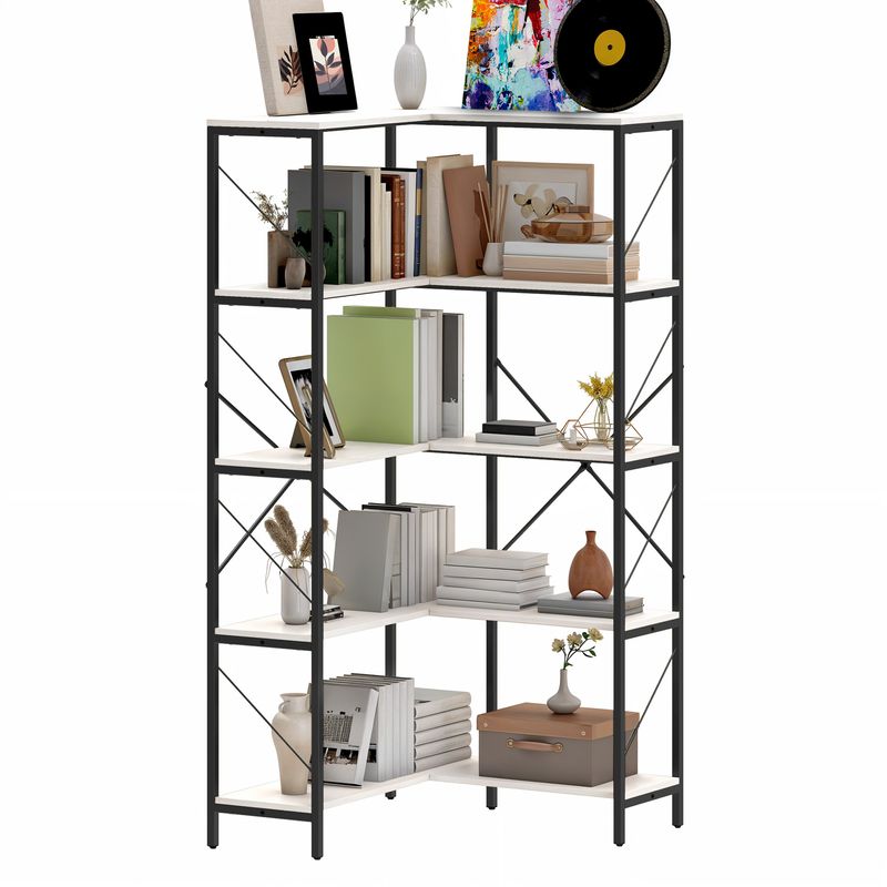 You can maximize corner space with this L-shaped bookshelf, which features a stable metal frame + 15mm P2 particleboard. The bookshelf offers 10 adjustable shelves, X-brace stability, and anti-tip design, fitting home and office.