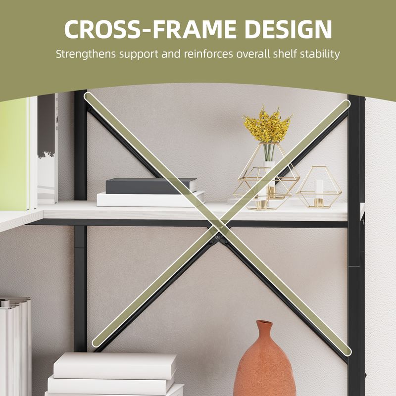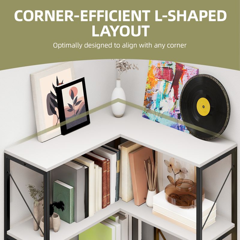 The 90° L-shape fits snugly into any corner, optimizing unused space while providing 10 open shelves for books, decor, or plants.