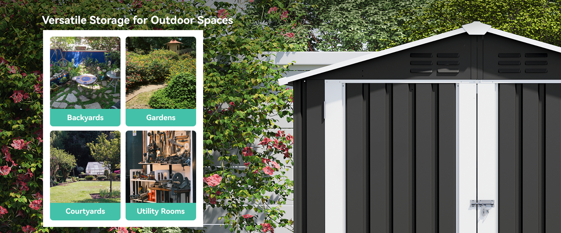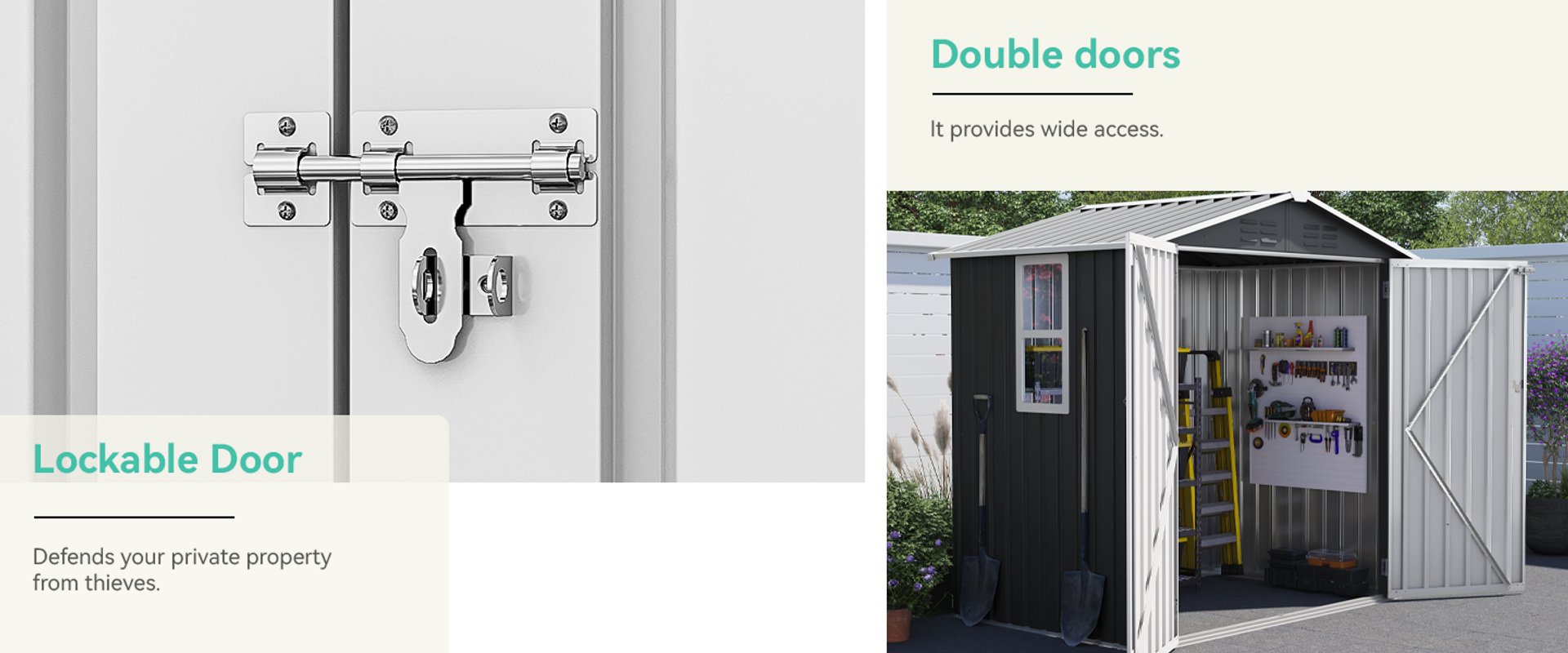 Constructed with heavy-duty galvanized steel and 0.25mm thick panels, this shed resists rust, water, and wind—ideal for year-round outdoor durability.