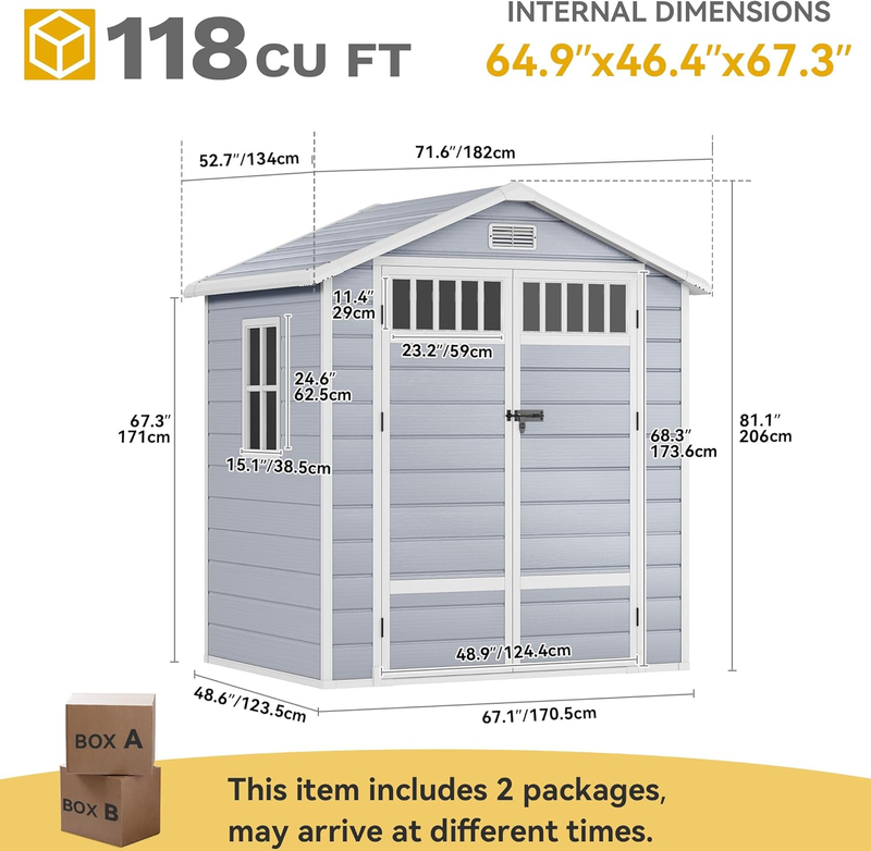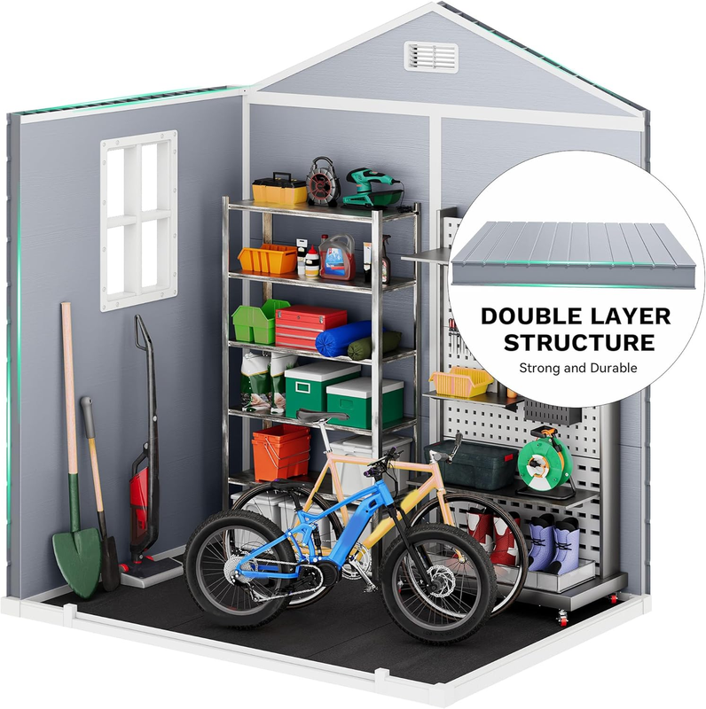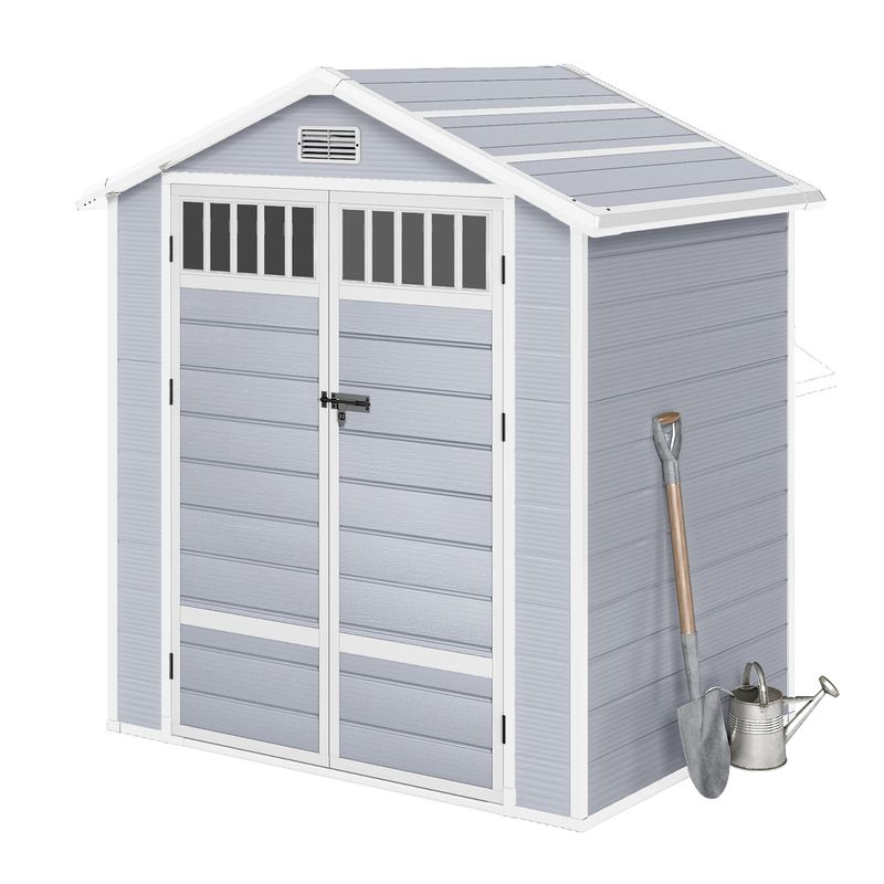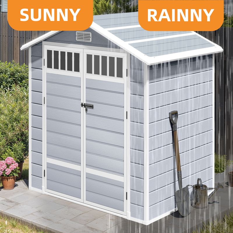 Upgrade your outdoor storage with this 6x4.4 ft resin shed, designed for durability, functionality, and style. Constructed from high-quality waterproof thermoplastic resin, it offers a secure, weather-resistant solution for storing garden tools, bikes, patio furniture, and more. Ideal for your backyard, patio, or lawn.