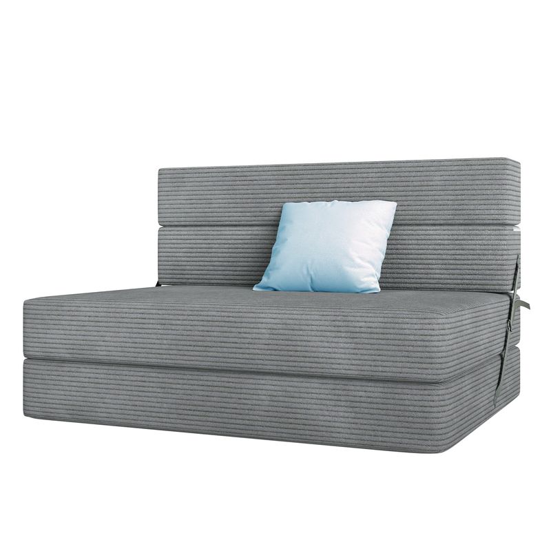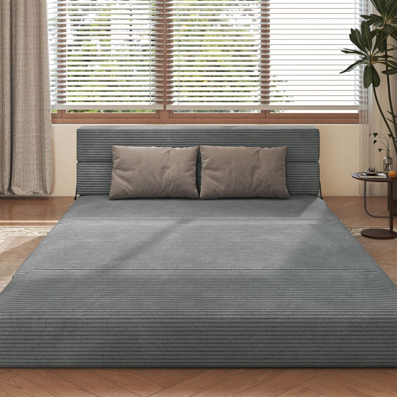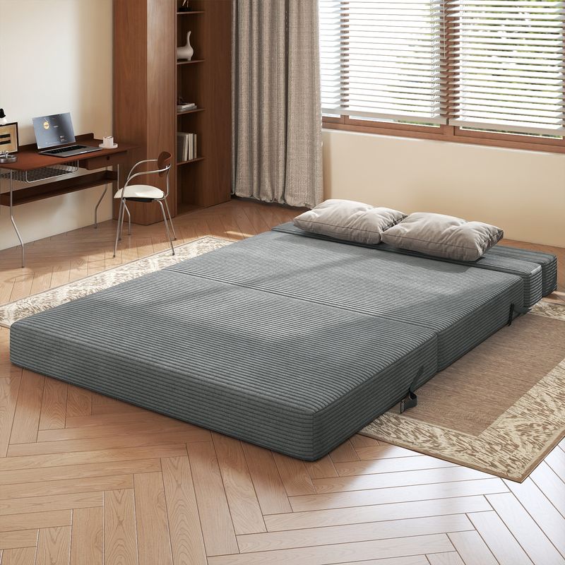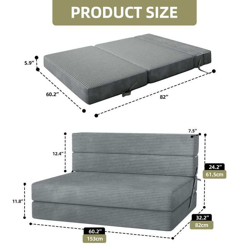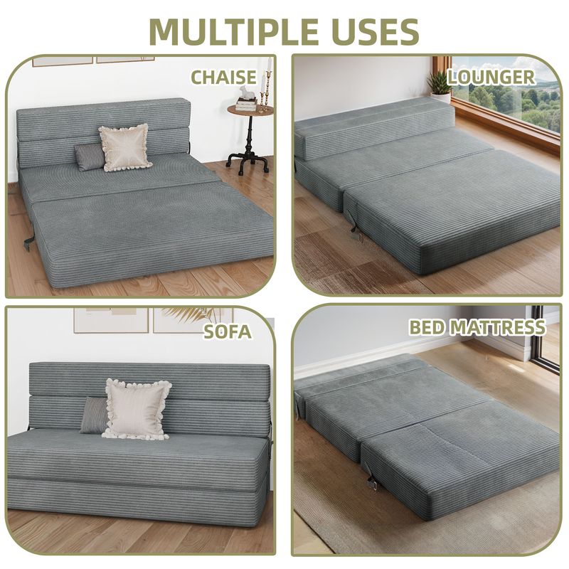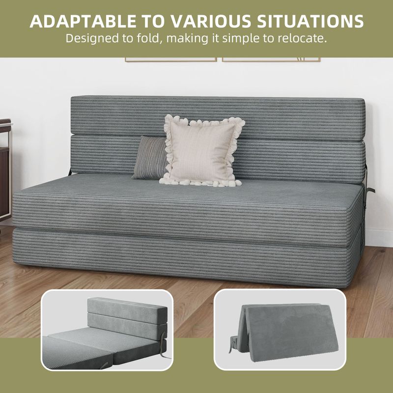 This foldable single sofa bed features soft corduroy fabric and 100% high-density foam filling, transforming instantly from compact 32" x 60" sofa to full 80" x 60" bed - perfect for small spaces with zero assembly required.