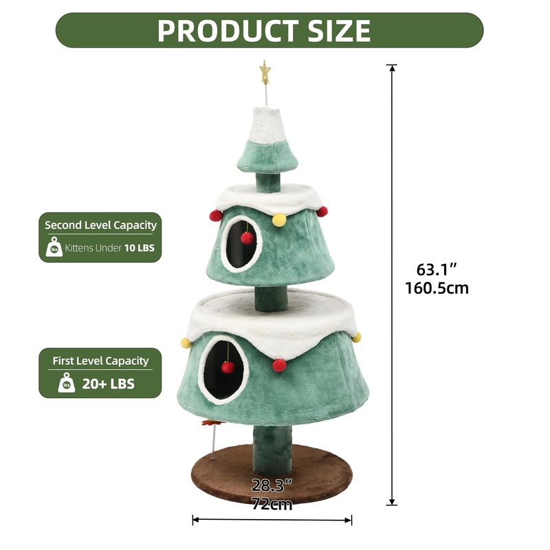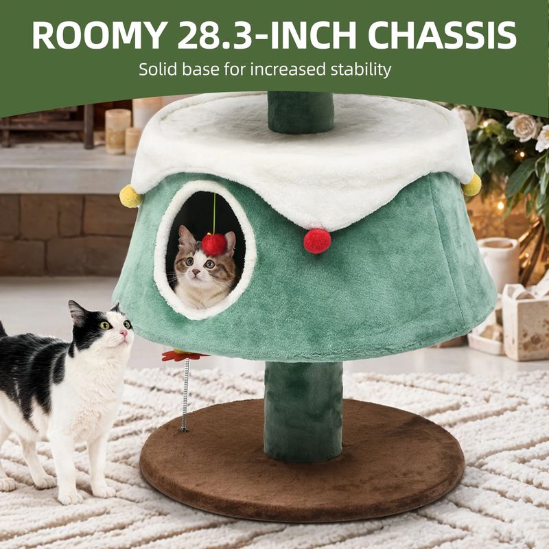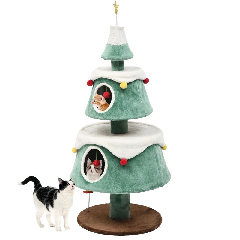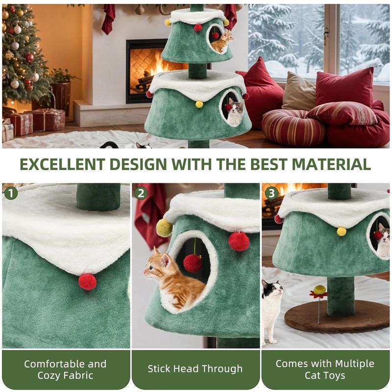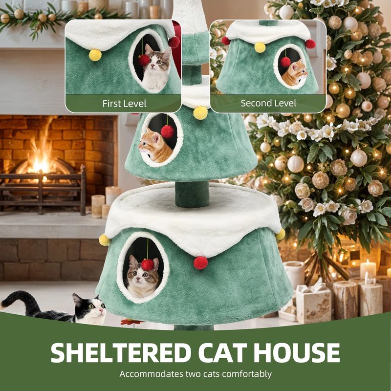 Transform your home into a festive feline paradise with this Christmas cat tree — a perfect blend of holiday décor and everyday comfort. Designed for both play and relaxation, it provides your cats with a cozy retreat while adding cheerful Christmas charm to your living space.