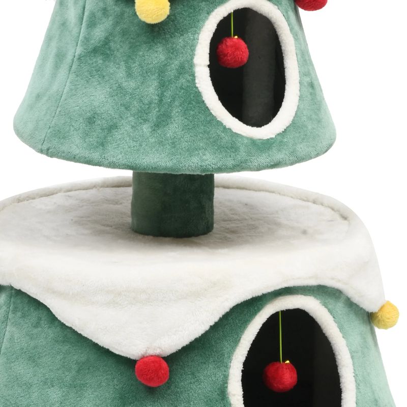 Featuring colorful plush hanging balls, this Christmas cat tree keeps your cat active and engaged during the holiday season, offering both exercise and joy in a festive setting.