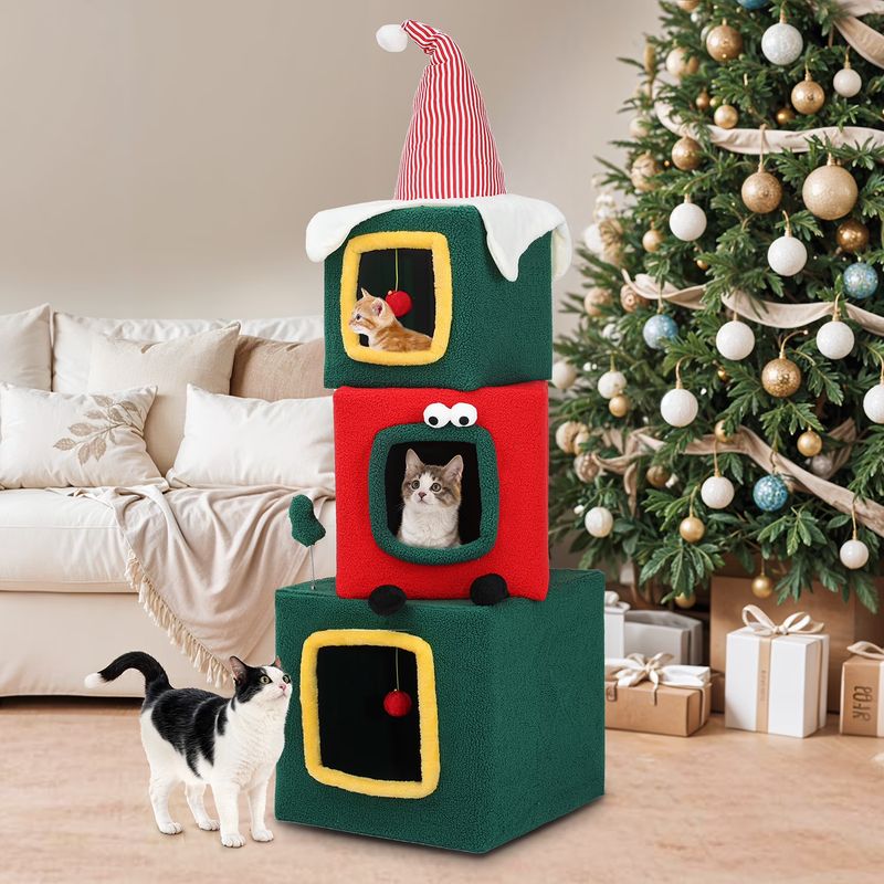 Bring the holiday spirit home with this Christmas cat tree, a perfect blend of festive décor and cozy retreat. Designed to entertain, relax, and delight, it transforms any space into a joyful cat paradise while adding cheerful Christmas charm to your living room, balcony, or bedroom.