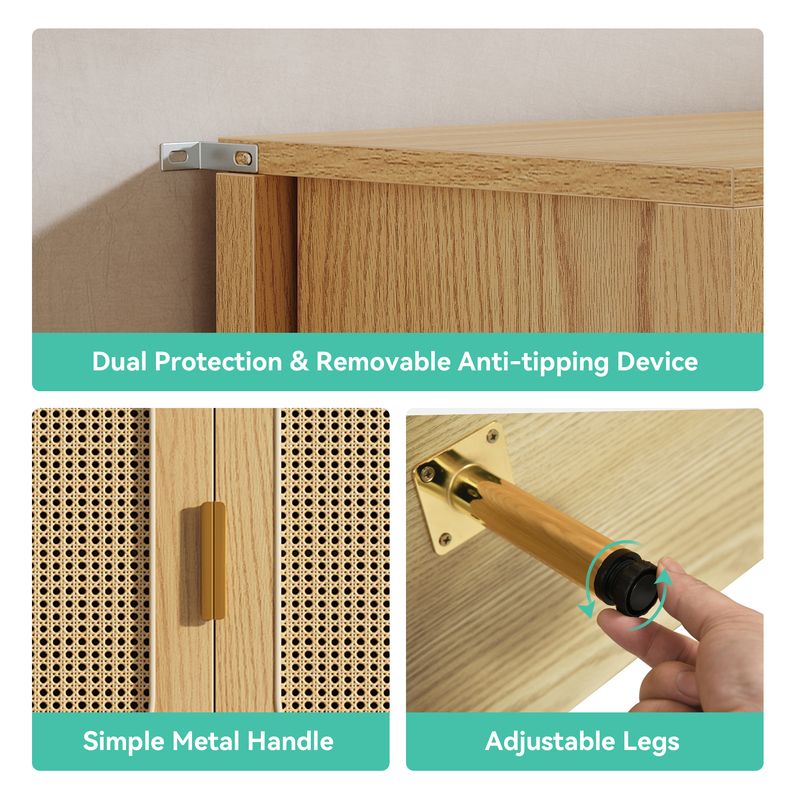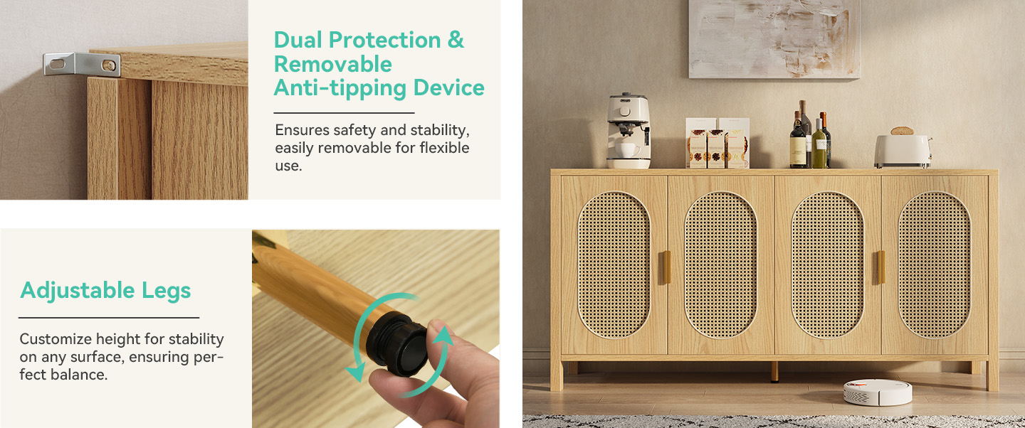 Equipped with an anti-tip buckle, this cabinet ensures stability and safety in your home, allowing you to confidently arrange your tableware, books, or any other cherished collections.