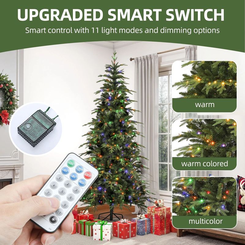Fill your space with warm white, multi-color and mixed colors through this pre-lit Xmas decoration, featuring 300 LED lights with 2 color choices and 11 lighting modes to customize the ambiance for any occasion.Remote Light Control