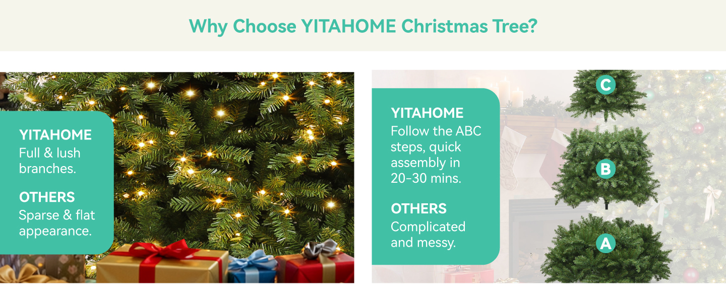 Crafted with a strong X-shaped iron base, thickened leaves, and sturdy branches, this tree ensures lasting stability. It can easily hold your cherished ornaments, giving your holiday décor a personalized touch.