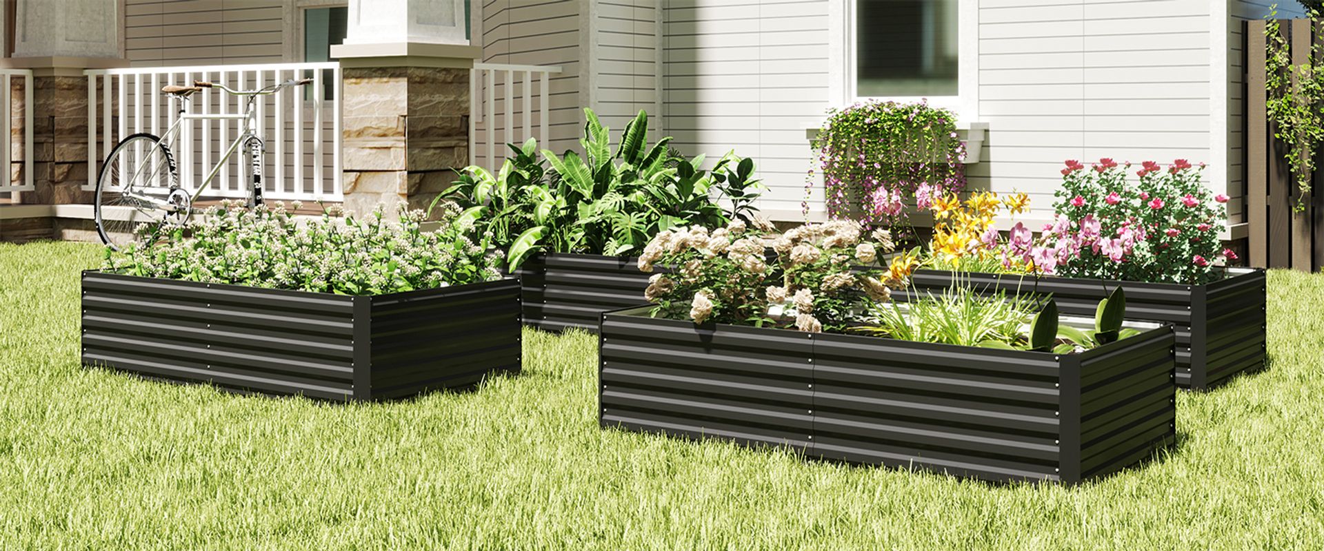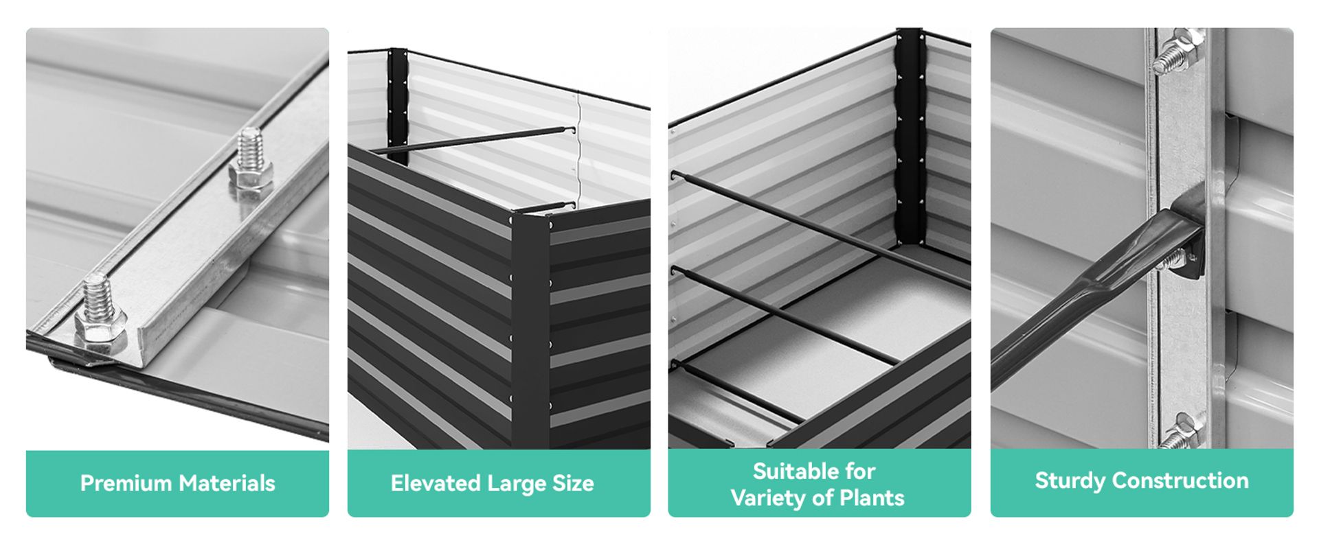 Our metal raised garden bed has support bars that enhance its soil-bearing capacity; The simple design facilitates a quick and easy installation