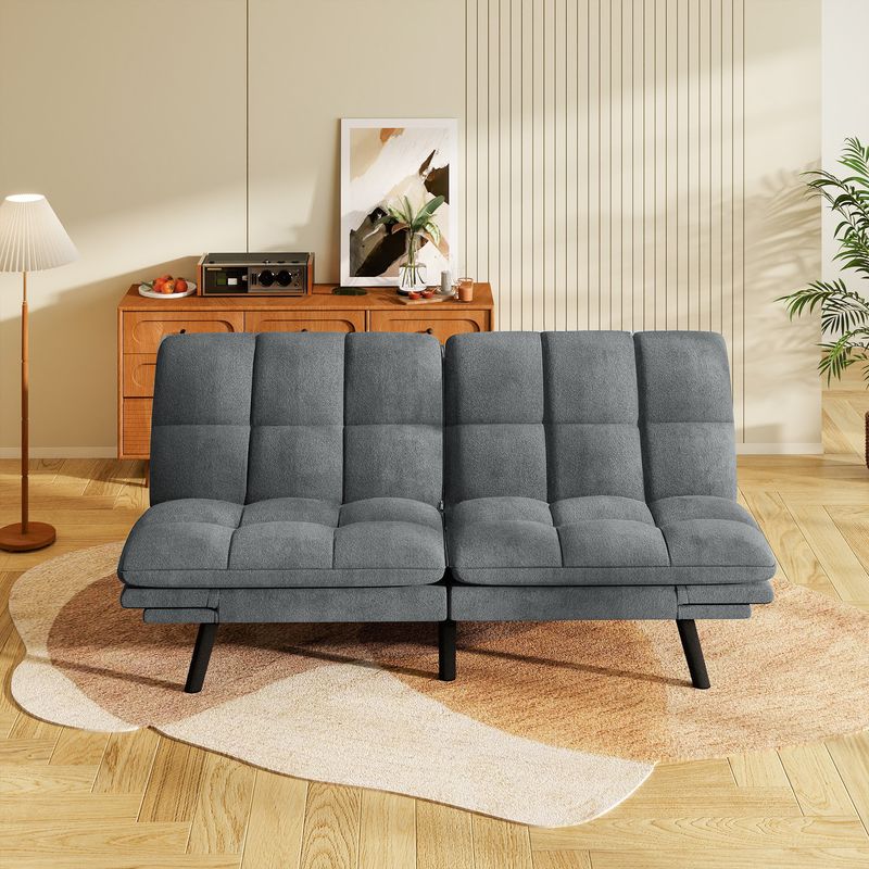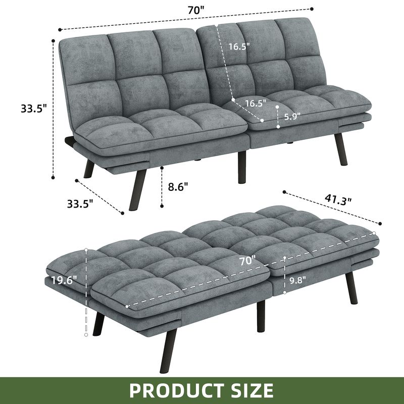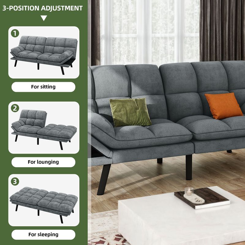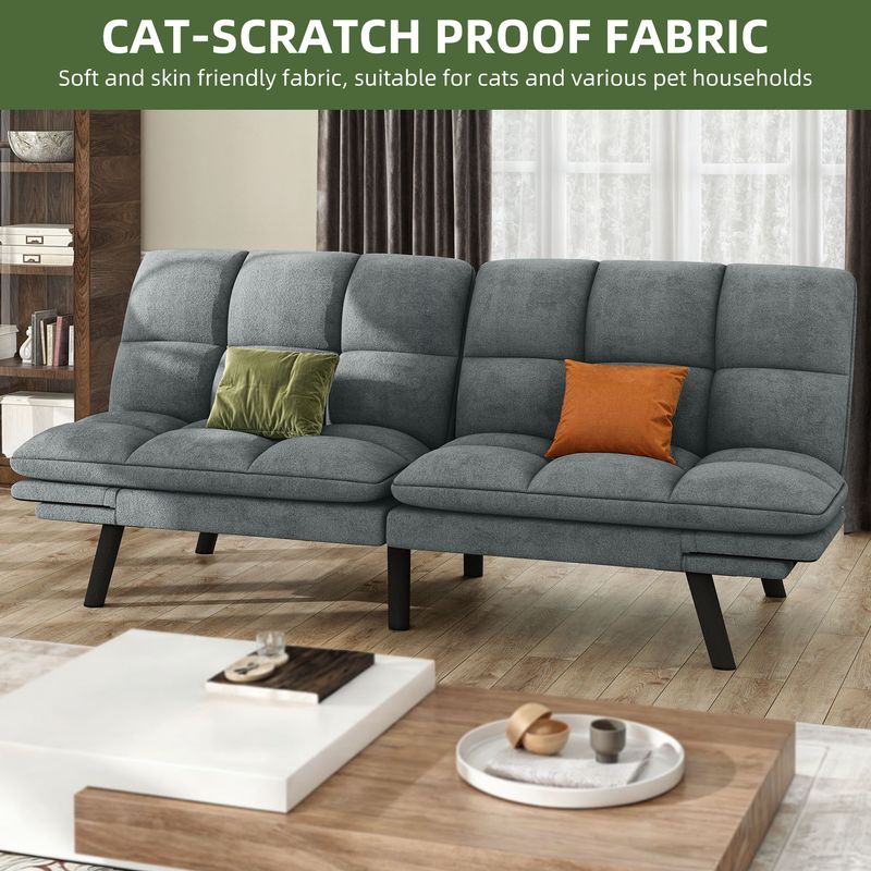This convertible sofa bed features cat-scratch-proof fabric and transforms from a chic loveseat to a twin bed with 3-position adjustable backrest. Perfect for small spaces with sturdy wood construction and easy 10-minute assembly.