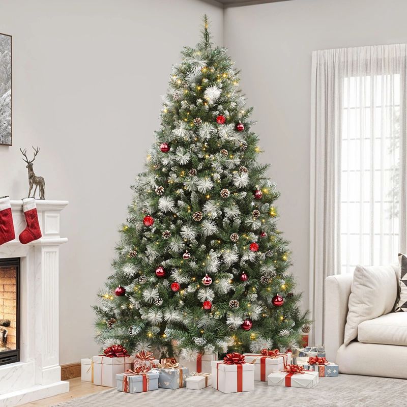 Bring holiday magic home with the YITAHOME Pre-Decorated Scotch Pine Christmas Tree. Standing 7.5 ft tall, it features pinecones, lush PVC tips, and remote-controlled lights with 3 colors and 11 modes. Easy to assemble, sturdy, and realistic, this tree is built to impress season after season.