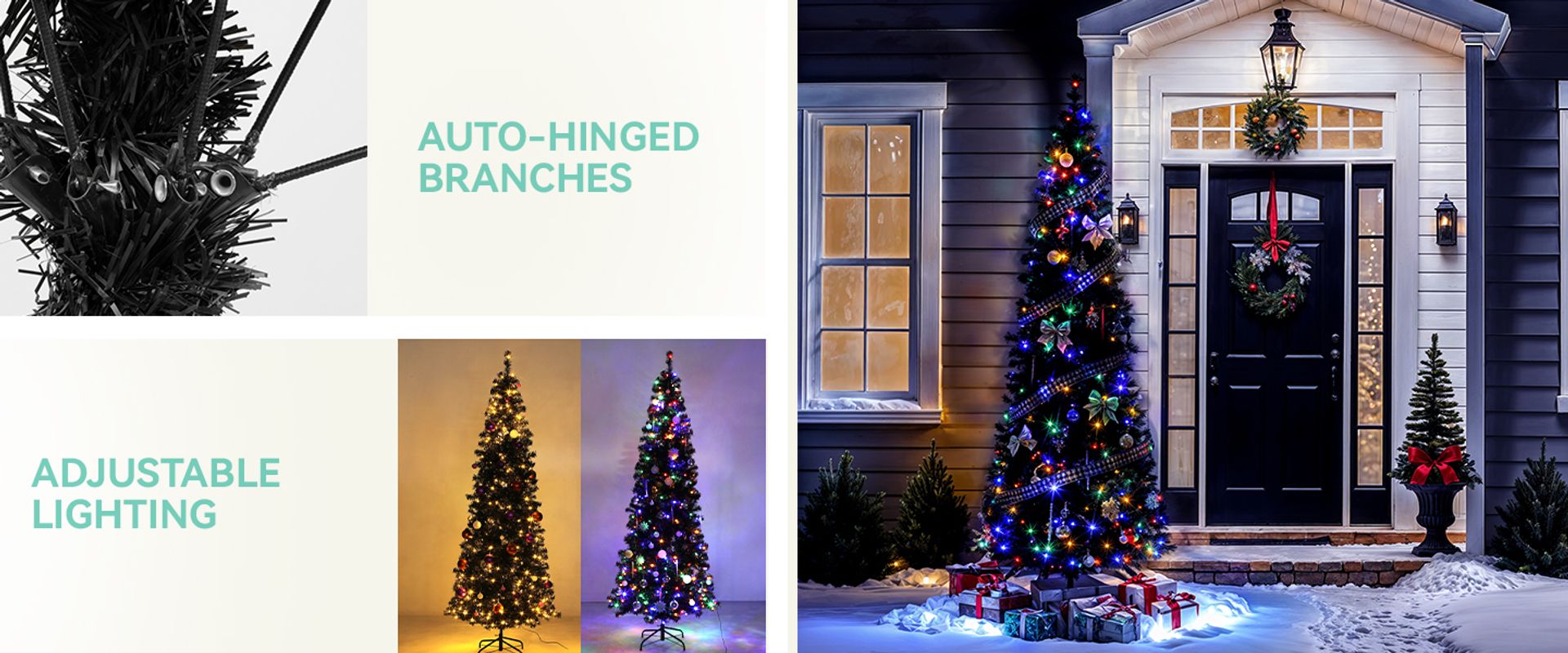 Bring festive magic to small spaces with our elegant pencil Christmas tree! Its slender silhouette fits perfectly in cozy corners while delivering full holiday charm. The pre-lit branches create instant ambiance with twinkling lights, and the sturdy design holds all your favorite ornaments. Effortless to set up and stunning to display, it's the perfect way to celebrate in style - making every moment merry and bright!