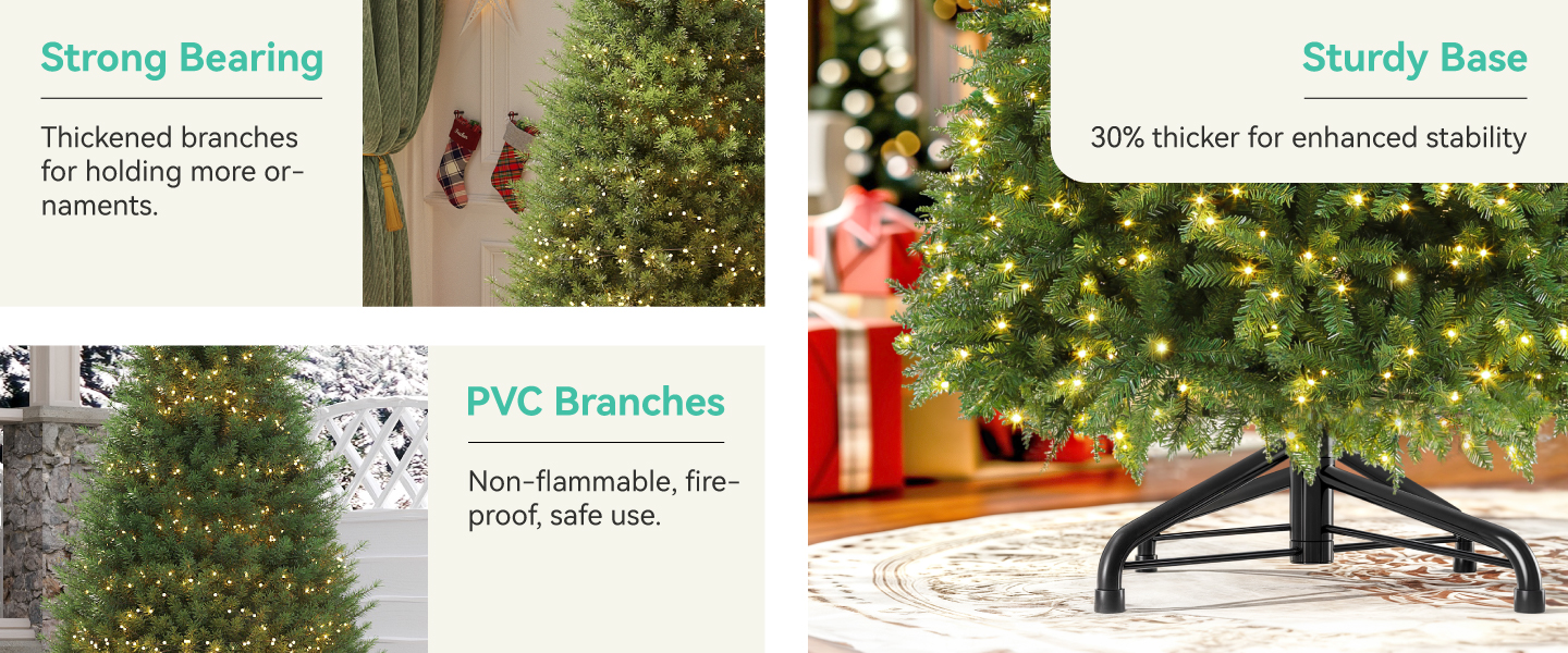 Crafted with a strong X-shaped iron base, thickened leaves, and sturdy branches, this tree ensures lasting stability. It can easily hold your cherished ornaments, giving your holiday décor a personalized touch.