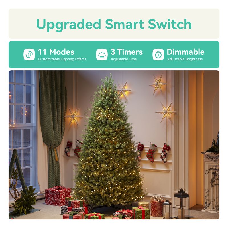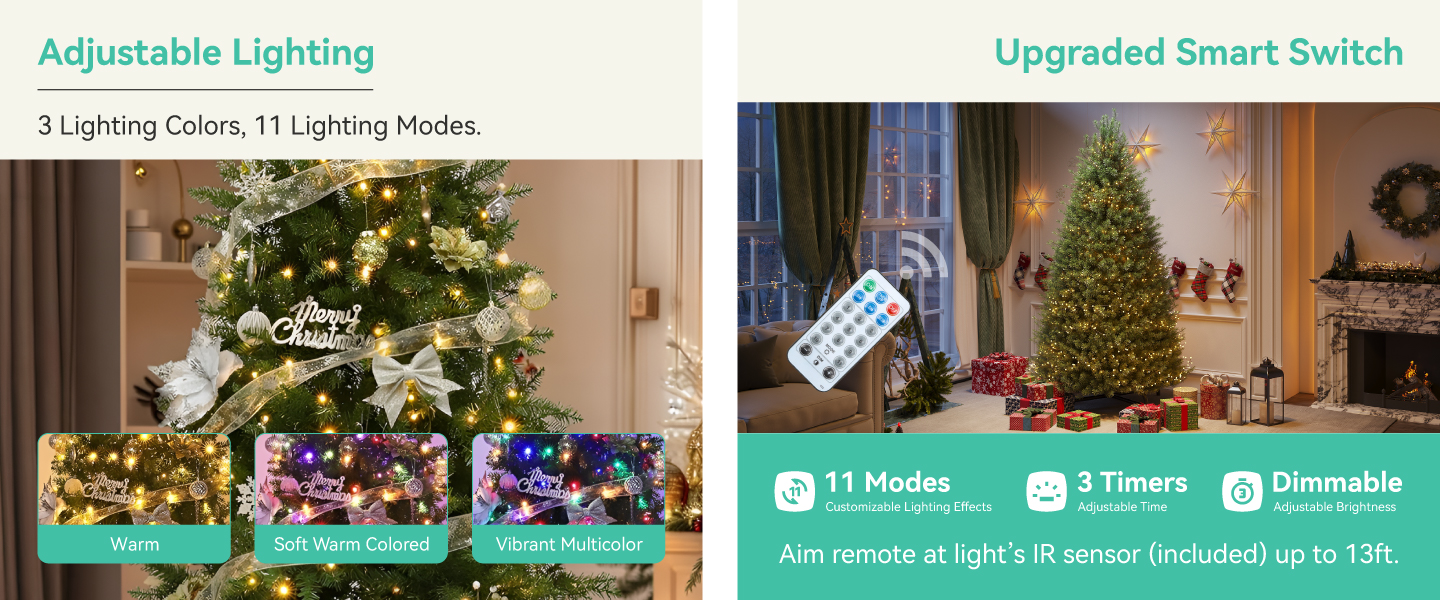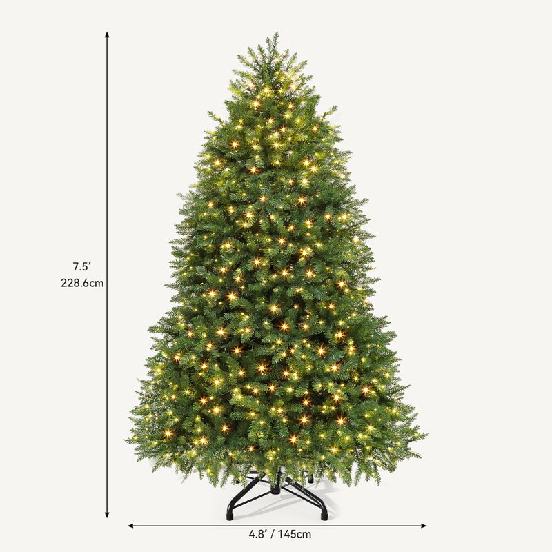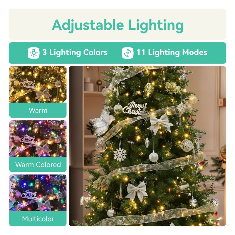 This pre-lit Christmas tree comes with 750 pre-strung lights and 11 light modes to bring warmth and sparkle to your celebrations. With just the touch of a button, you can easily switch modes and enjoy the perfect holiday glow.
