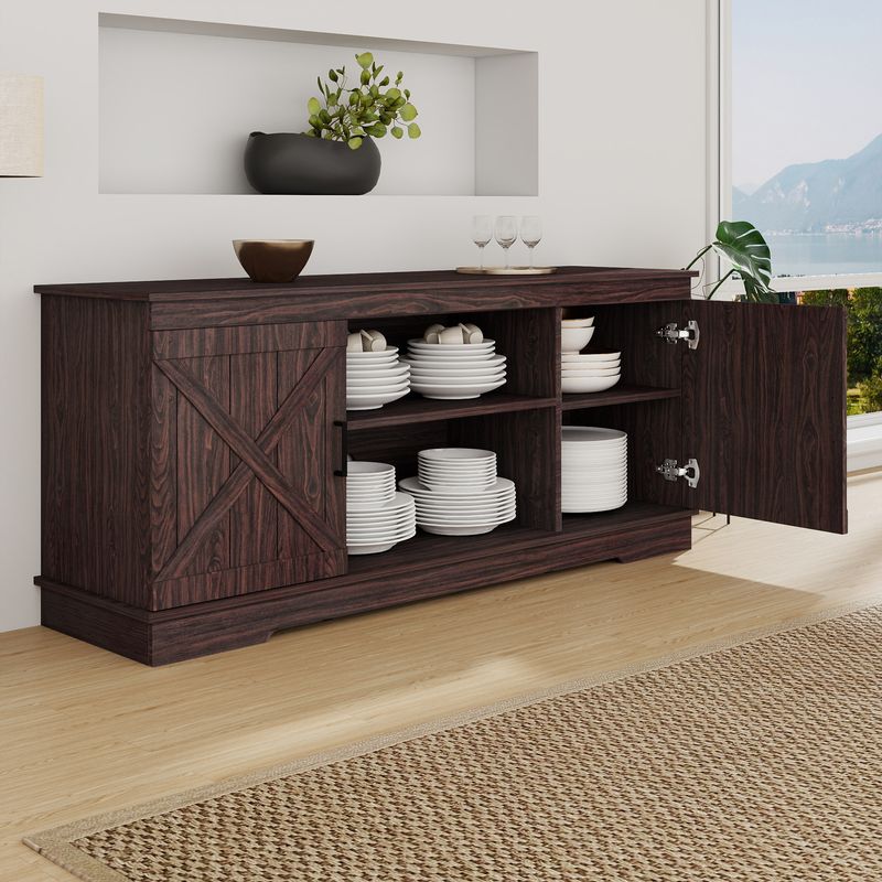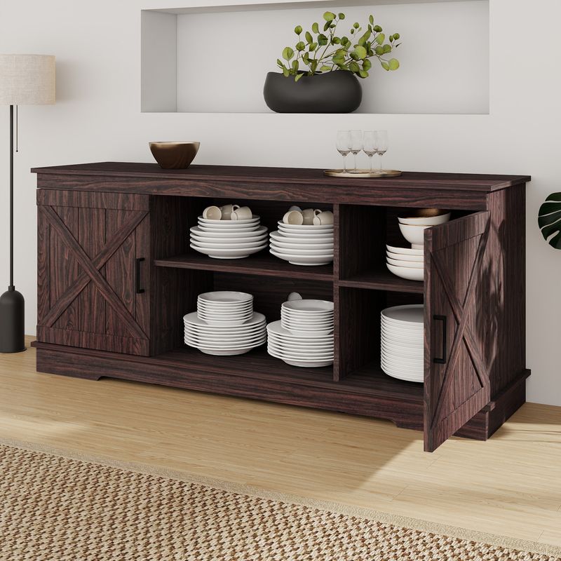 Elevate your space with this 59.5" farmhouse sideboard. Its retro wood grain finish, double barn doors, and spacious storage cabinets offer a perfect blend of rustic charm and practical organization for any room.