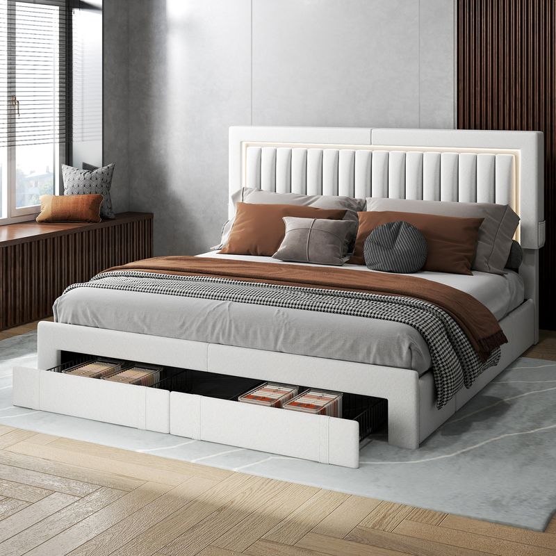 The bed frame with 4 rolling storage drawers for easy organization—keep your space tidy effortlessly!
