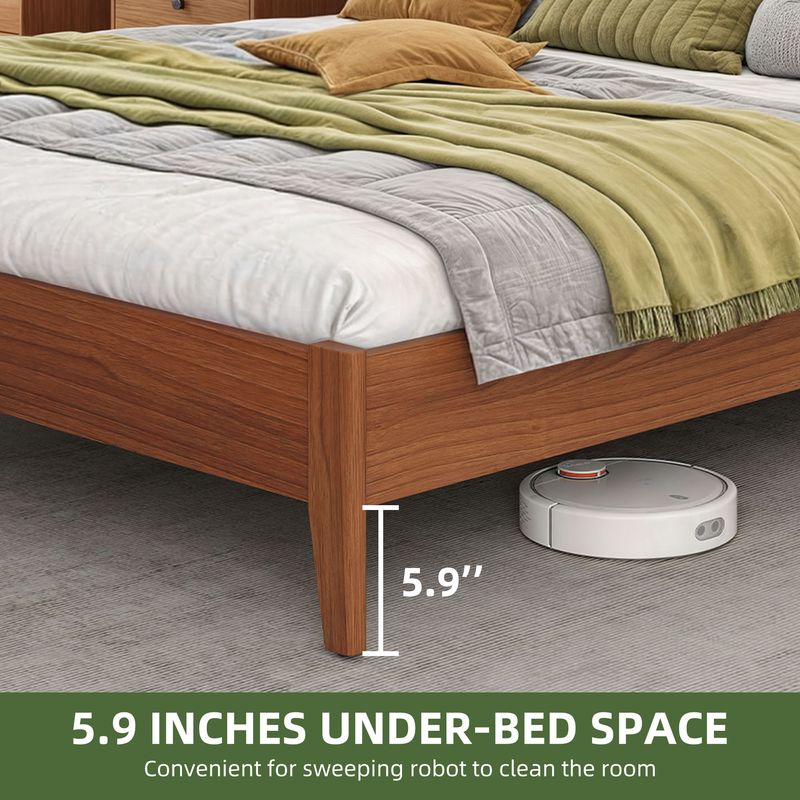 This bed offers 5.9" underframe space for robot vacuums and storage boxes, keeping bedrooms clutter-free.