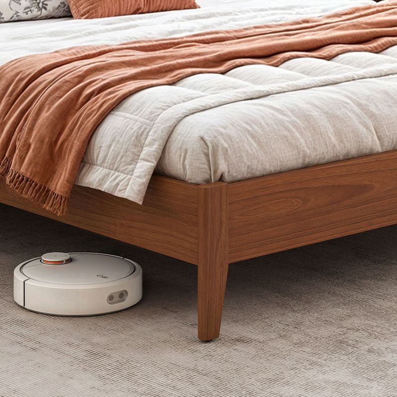 Solid wood bed frame with natural grain, offering modern elegance and durable construction for timeless style.