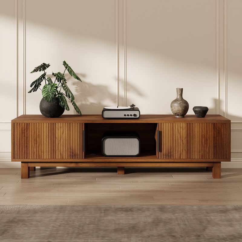 Mid-Century 59" Solid Wood Grille TV Stand with Adjustable Shelves