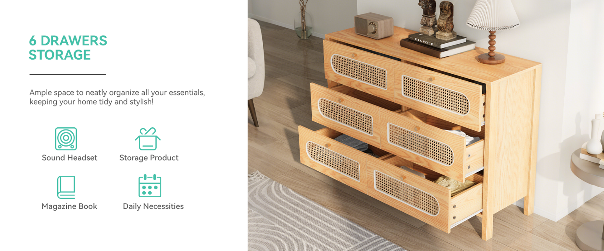 Stay organized with six spacious drawers, offering ample storage for all your essentials.